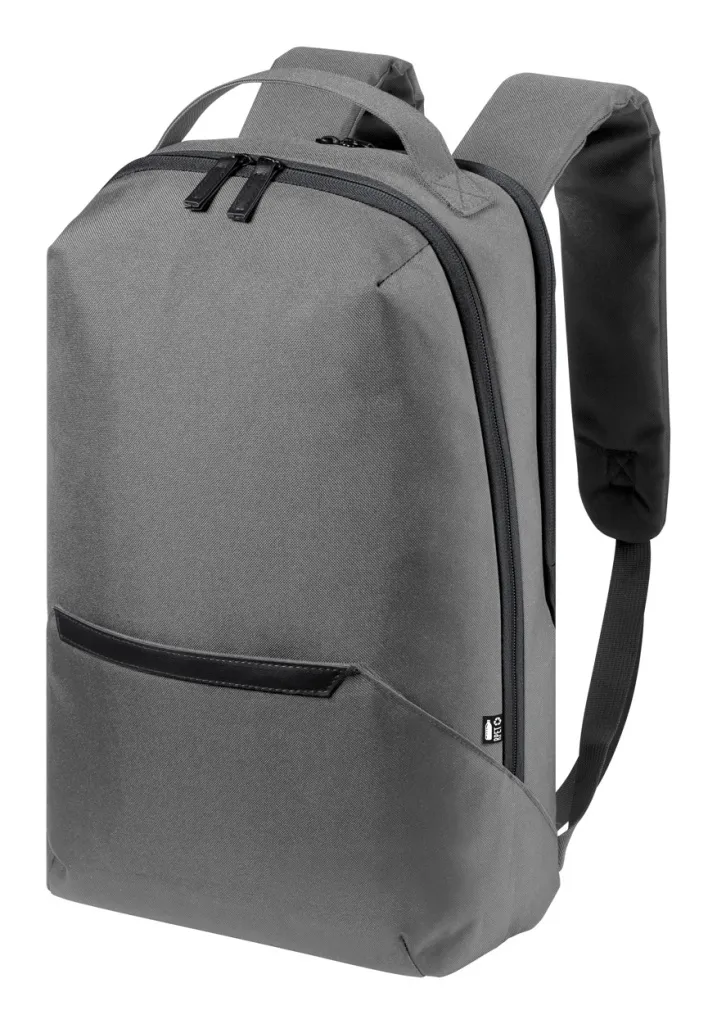 Vodootporni RPET ruksak s pretincem s patentnim zatvaračem, pretincem za 15" laptop i 10" tablet, remenom za kofer, sakrivenim anti-theft džepom i ergonomskim leđima i naramenicama. Izrađen od 600D RPET poliestera s prepoznatljivom RPET etiketom.