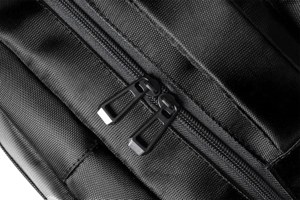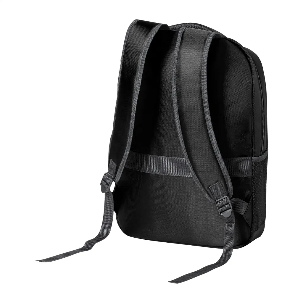 Ruksak izrađen od 420D RPET poliestera s pretincima s patentnim zatvaračima, bočnim mrežastim džepovima, podstavljenim džepom za 15" laptop, remenom za kofer, postavljenim leđima i naramenicama i s prepoznatljivom RPET etiketom.