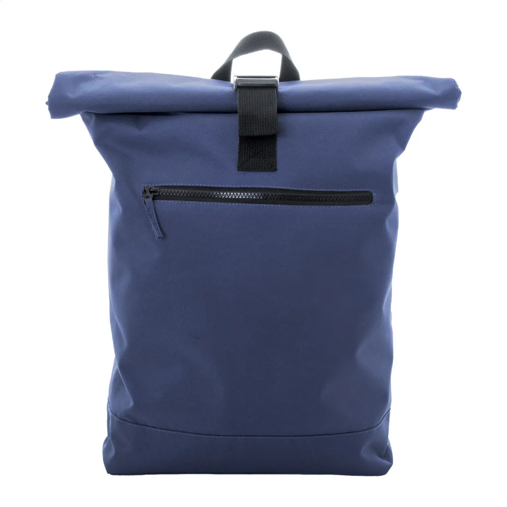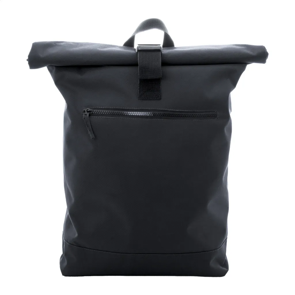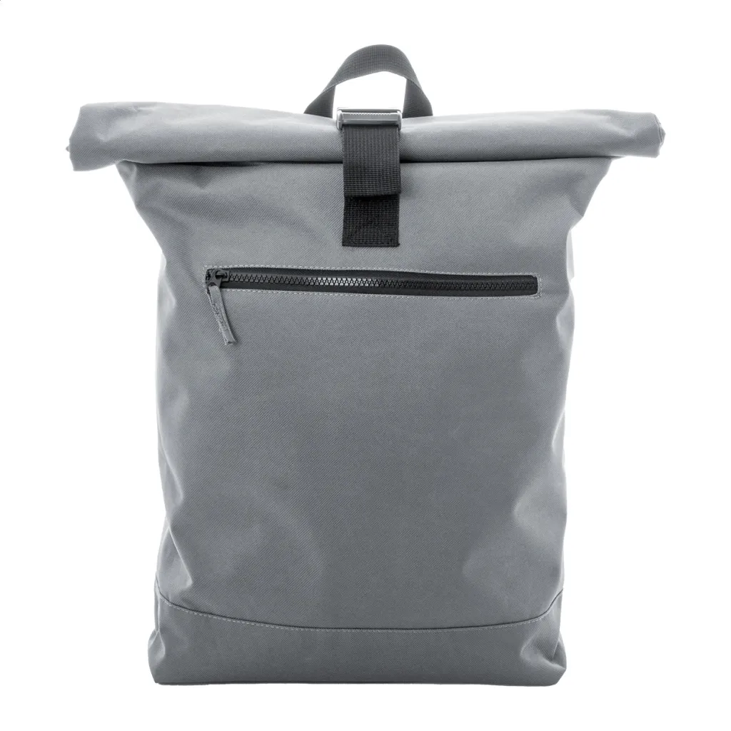 RPET rolltop ruksak s kopčom za zatvaranje, prednjim džepom s patentnim zatvaračem, podstavljenim pretincem za prijenosno računalo (15"), podstavljenim leđima i naramenicama. 600D RPET poliester s prepoznatljivom RPET oznakom.