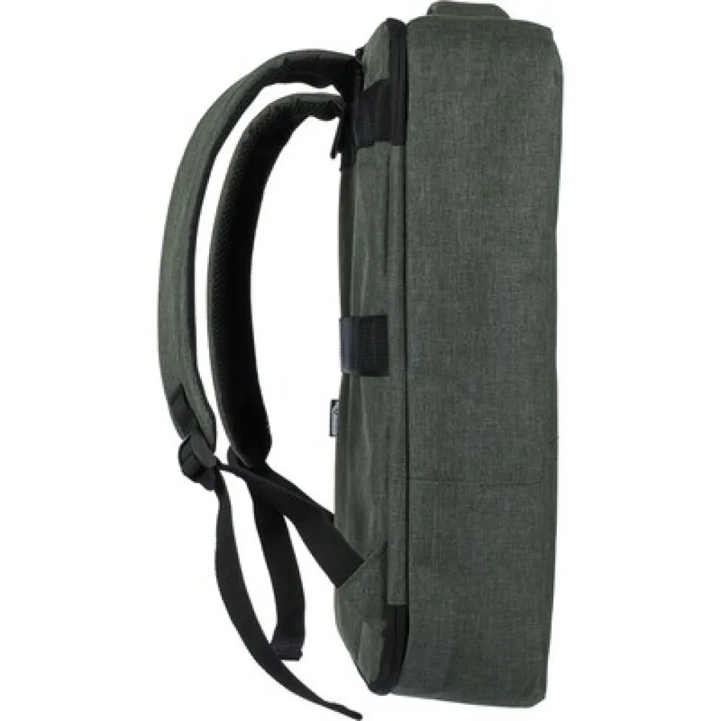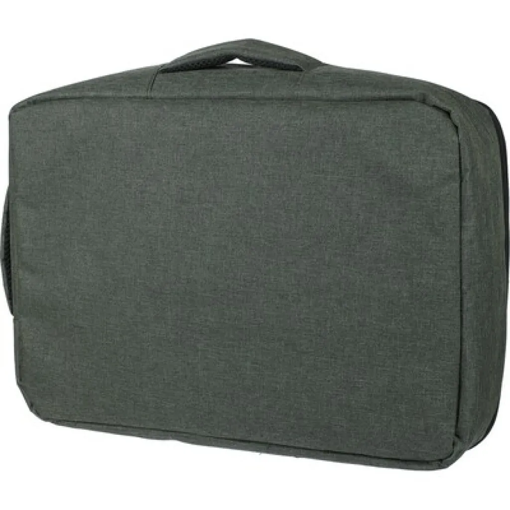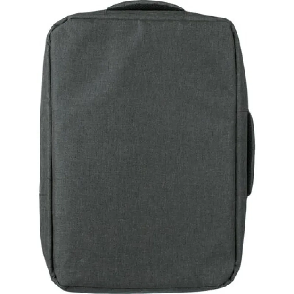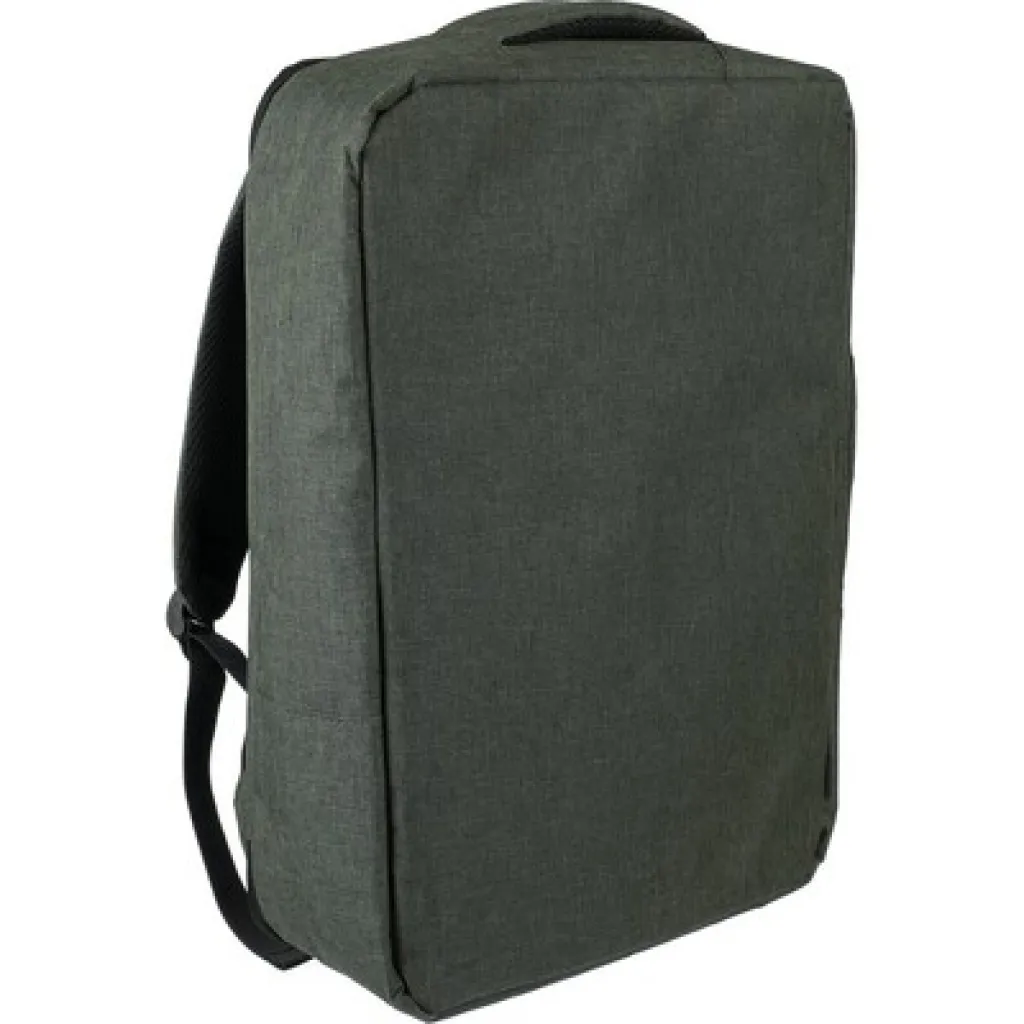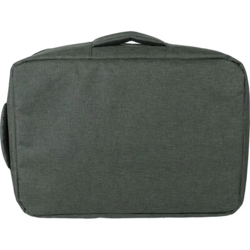 RPET ruksak za prijenosno računalo 15", ima veliki pretinac s patentnim zatvaračem s višestrukim džepovima za umetanje, džep za prijenosno računalo s kopčom za prijenosno računalo od 15", kapacitet 12L, dizajn uključuje pojačanu, ventiliranu podlogu, podesive naramenice, bočnu ručku za nošenje i remen za kolica, nosivost: 10 kg, proizvod izrađen od RPET poliesterskog 300D s 210D RPET podstavom.