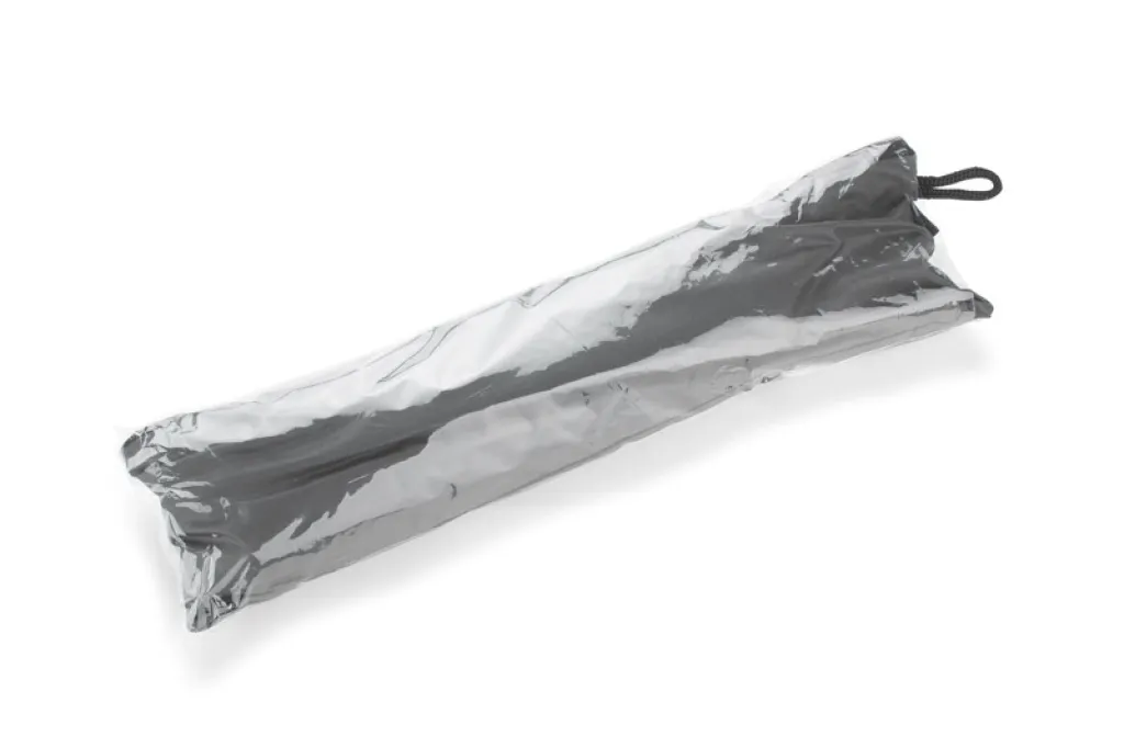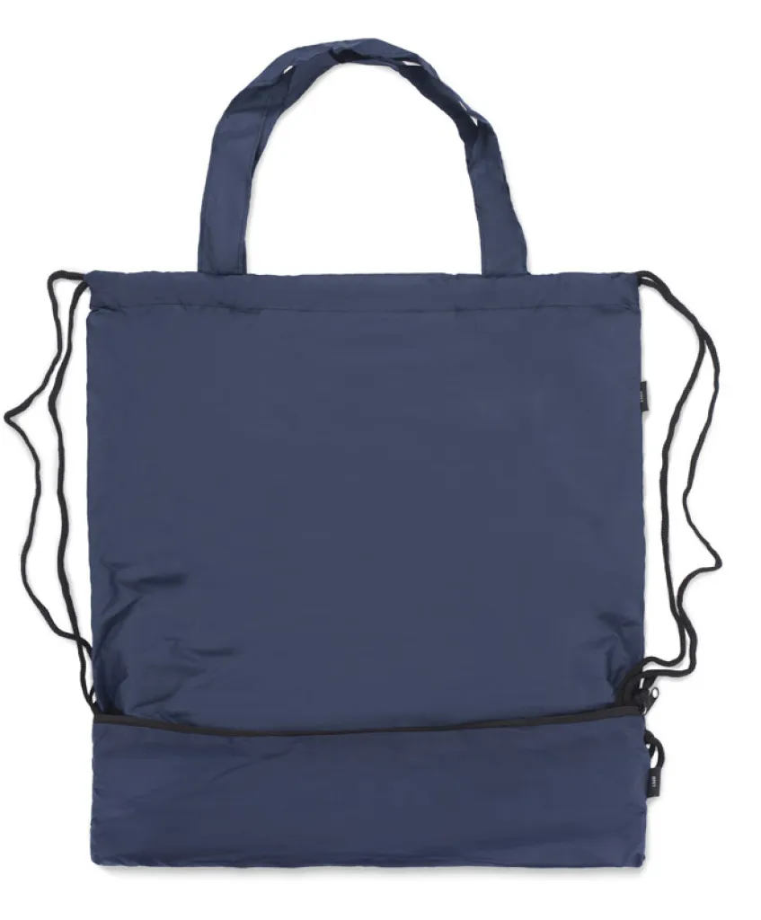 "RAINY torba s vezicama i ubrella set izrađeni su od RPET poliestera, što ga čini ekološki prihvatljivijim. Unutrašnjost torbe je jednokomorna. Osim tradicionalnih žica, ima i ručke duljine 44 cm, pa može se koristiti i kao torba za kupovinu.Na dnu torbe nalazi se džep s patentnim zatvaračem u koji je sakriven uključeni kišobran (također izrađen od RPET poliestera). Kišobran se ručno otvara i zatvara. Maksimalno opterećenje torbe je oko 3 kg. "