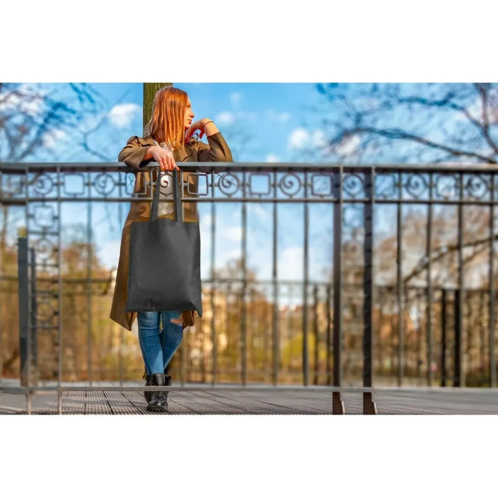 Torba za kupovinu izrađena od RPET-a, s dugim ručkama za nošenje na ramenu. Proizvod izrađen od netkanog RPET-a 75 g/m2. Uključuje RPET ikonu na etiketi.
