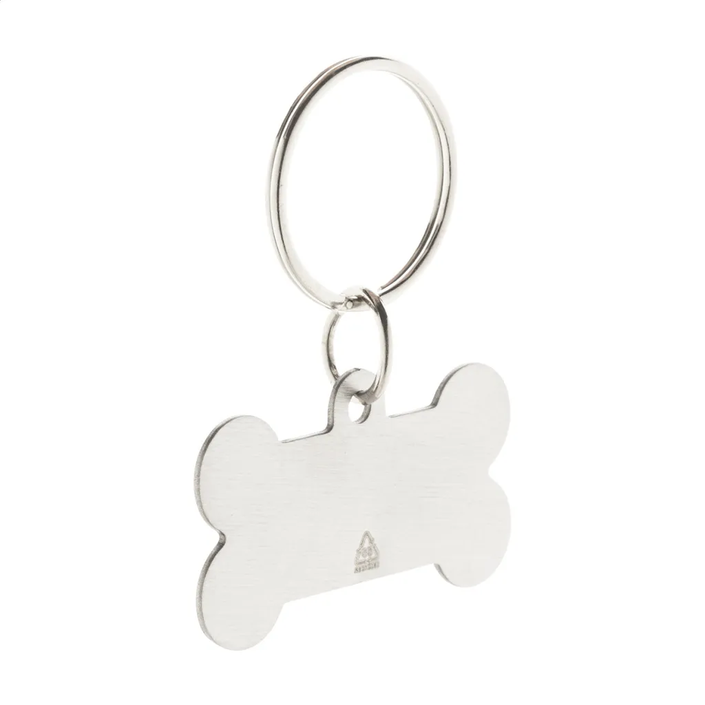 Pseća identifikacijska pločica u obliku kosti od recikliranog nehrđajućeg čelika, s privjeskom za ključeve.