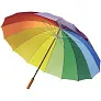 Ručni kišobran, 16 panela različitih boja, metalna osovina, drvena ručka, zatvaranje na čičak.