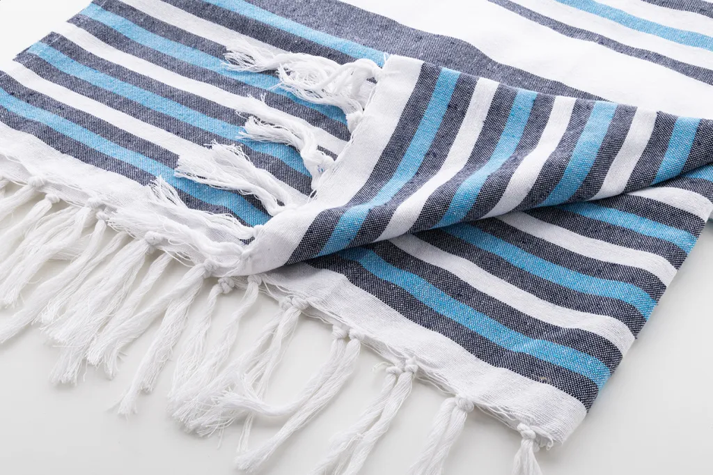 Pareo ručnik za plažu s trobojnim prugama, izrađen od 100 % pamuka (210 g/m²)