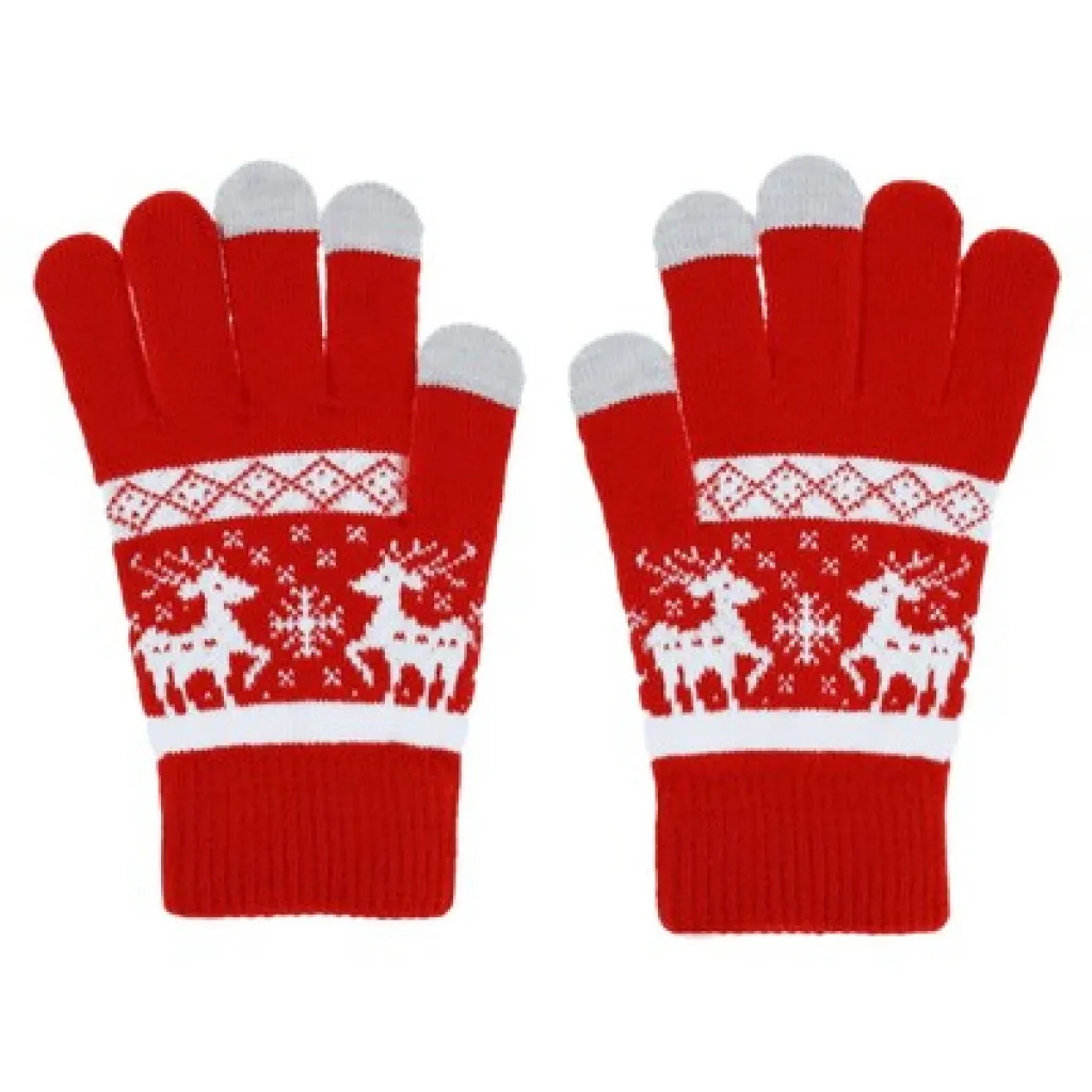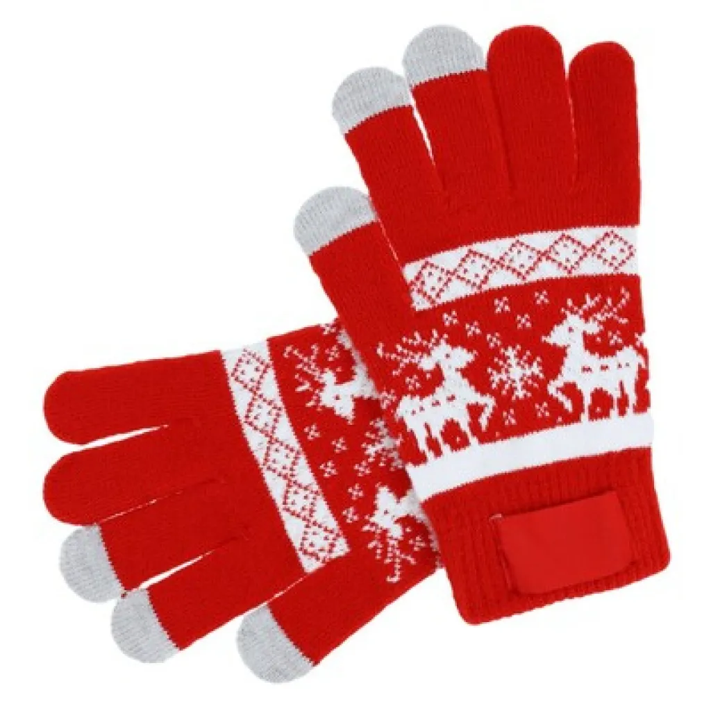 Zimske rukavice s božićnim uzorkom, uključuju tri posebna vrha koji omogućuju rad na ekranima osjetljivim na dodir (palac, kažiprst i srednji prst) te posebnu etiketu za personalizaciju. Jedna veličina odgovara većinu odraslih, proizvod od akrilnih vlakana. Proizvod izrađen od akrilnog vlakna.