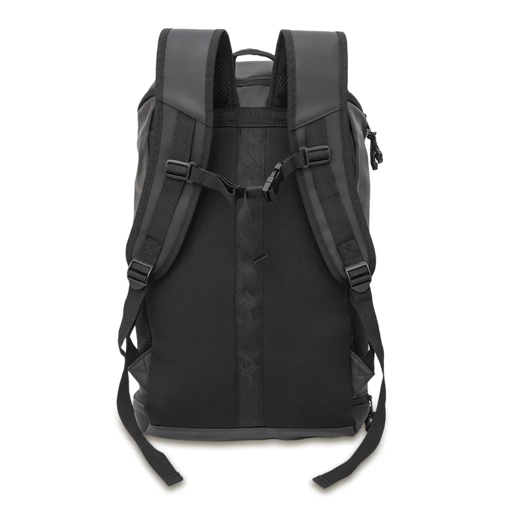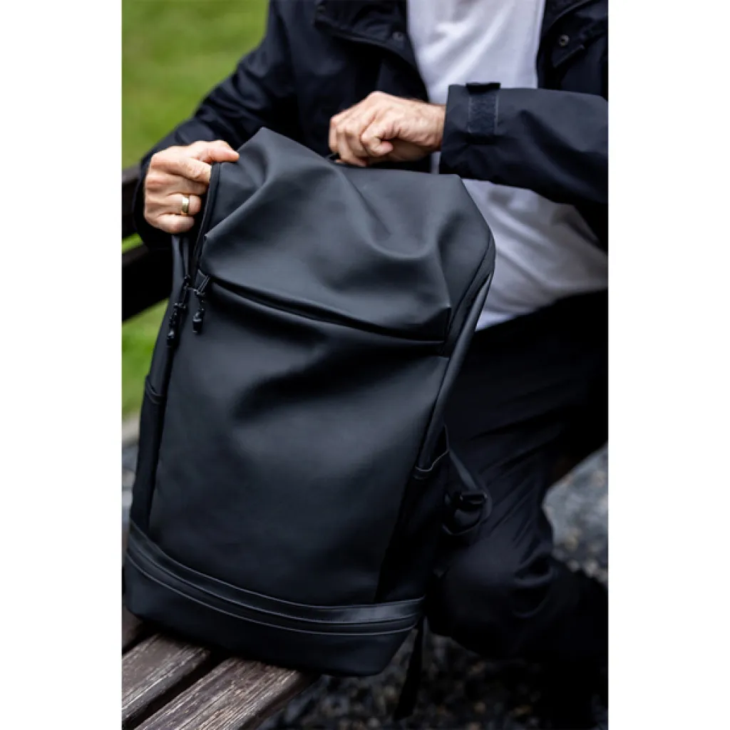 Prostrani ruksak izrađen od vodootporne PU tkanine. Ima glavni pretinac s malim unutarnjim džepom s patentnim zatvaračem. Na prednjoj strani ima veliki džep s patentnim zatvaračem. Također ima veliki donji džep, dva bočna mrežasta džepa. Udobne mekane stražnje strane od pjene i ojačane naramenice od meke pjene s mrežom i podesivim vodoravnim remenom za prsa s kopčom. Podstava od poliestera. Unutarnji šavovi ojačani poliesterskom trakom. Kapacitet 30 L.