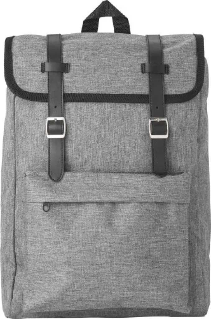 Ruksak izrađen od 300D i 210D poliestera s prednjim džepom na patentni zatvarač. Preklop se zatvara pomoću dvije metalne kopče. Leđa su podstavljena, naramenice su podstavljene i podesive.