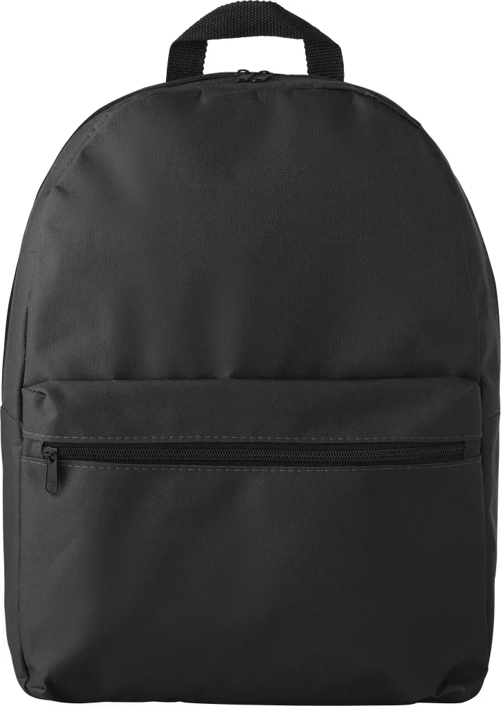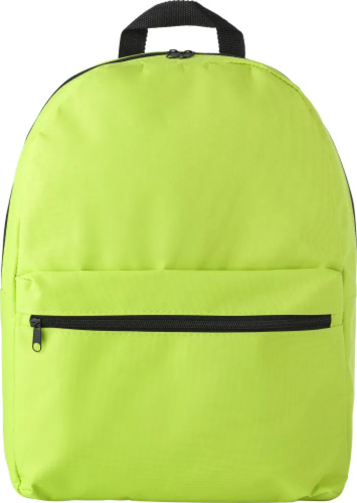 Ruksak od poliestera (600D) s patentnim zatvaračem na glavnom pretincu i prednjim džepom. Torba ima podesive, podstavljene naramenice.
