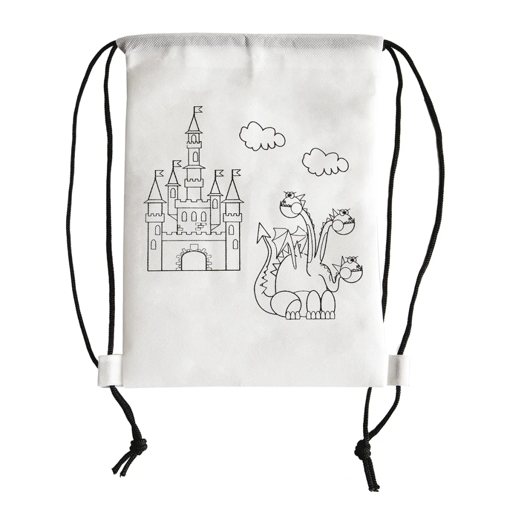 Ruksak s vezicama od netkanog materijala (80 g/m²) s motivom za bojenje s 4 voštane bojice.