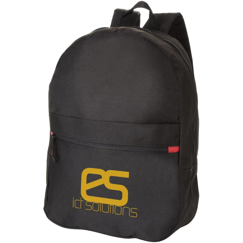 Ruksak s glavnim pretincem s patentnim zatvaračem i prednjim džepom. Podesive podstavljene naramenice i gornja ručka za nošenje.