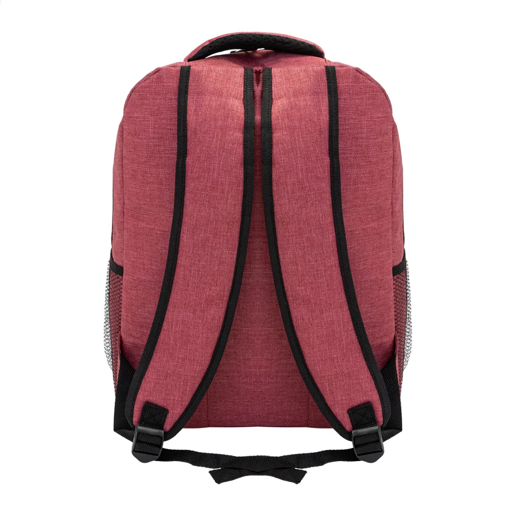 Ruksak s odjeljcima na patentno zatvaranje te podstavljenim stražnjim dijelom, naramenicama i odjeljkom za laptop (15"). 600D polyester.