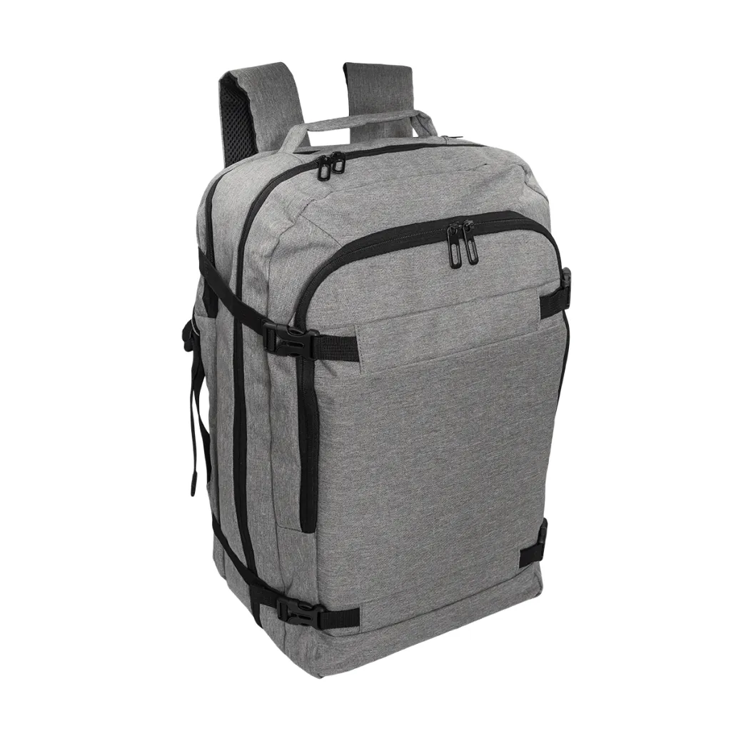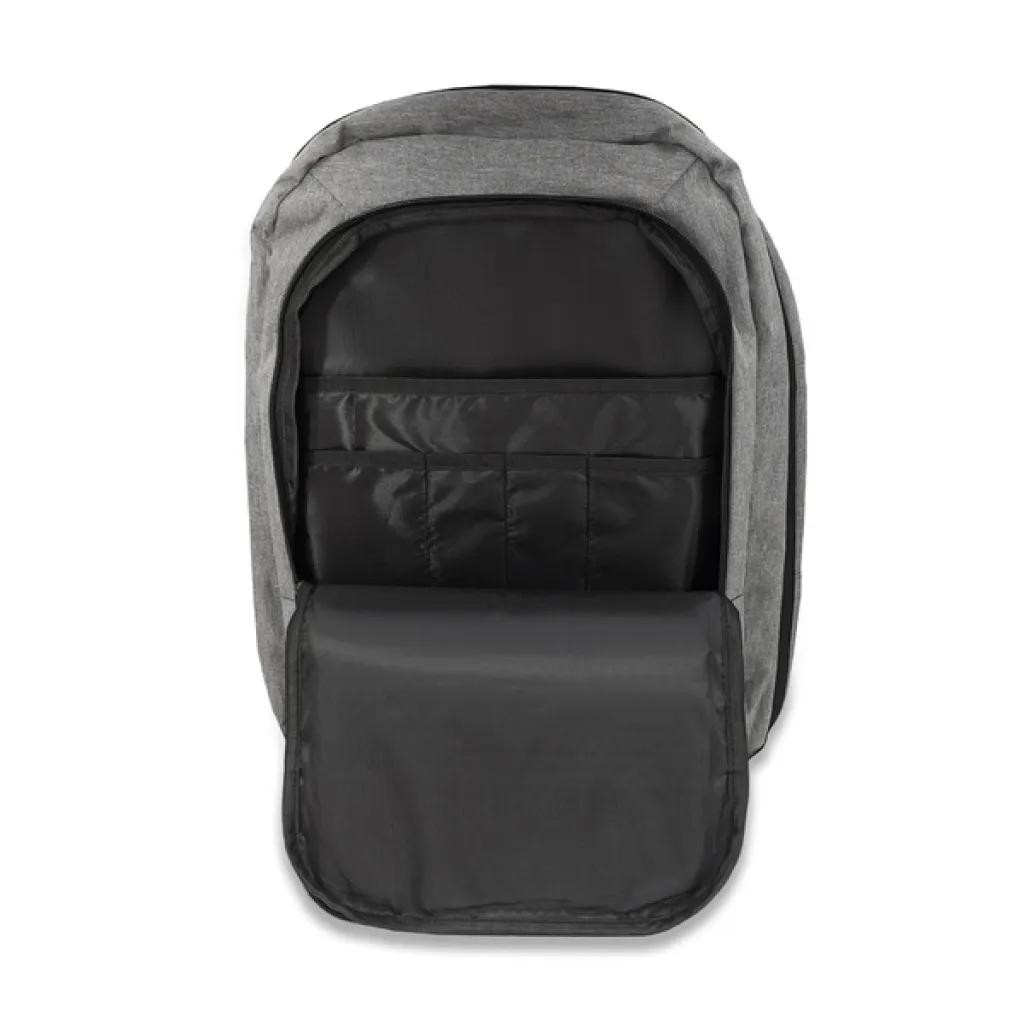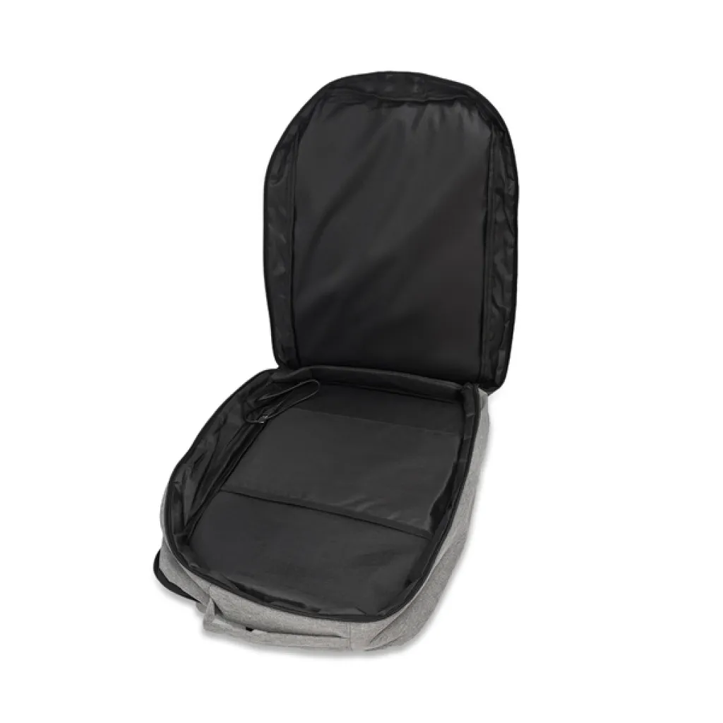 Ruksak s mekanim pretincem za prijenosno računalo od 17". Opremljen glavnim pretincem i prednjim džepom na patentni zatvarač. Ugrađen USB priključak na koji možete spojiti prijenosnu bateriju i puniti telefon (interni kabel uključen u set). Veliki broj pretinaca. Sa strane i na vrhu ruksaka nalaze se dvije mekane ručke zahvaljujući kojima ga možete nositi u ruci - kao torbu.