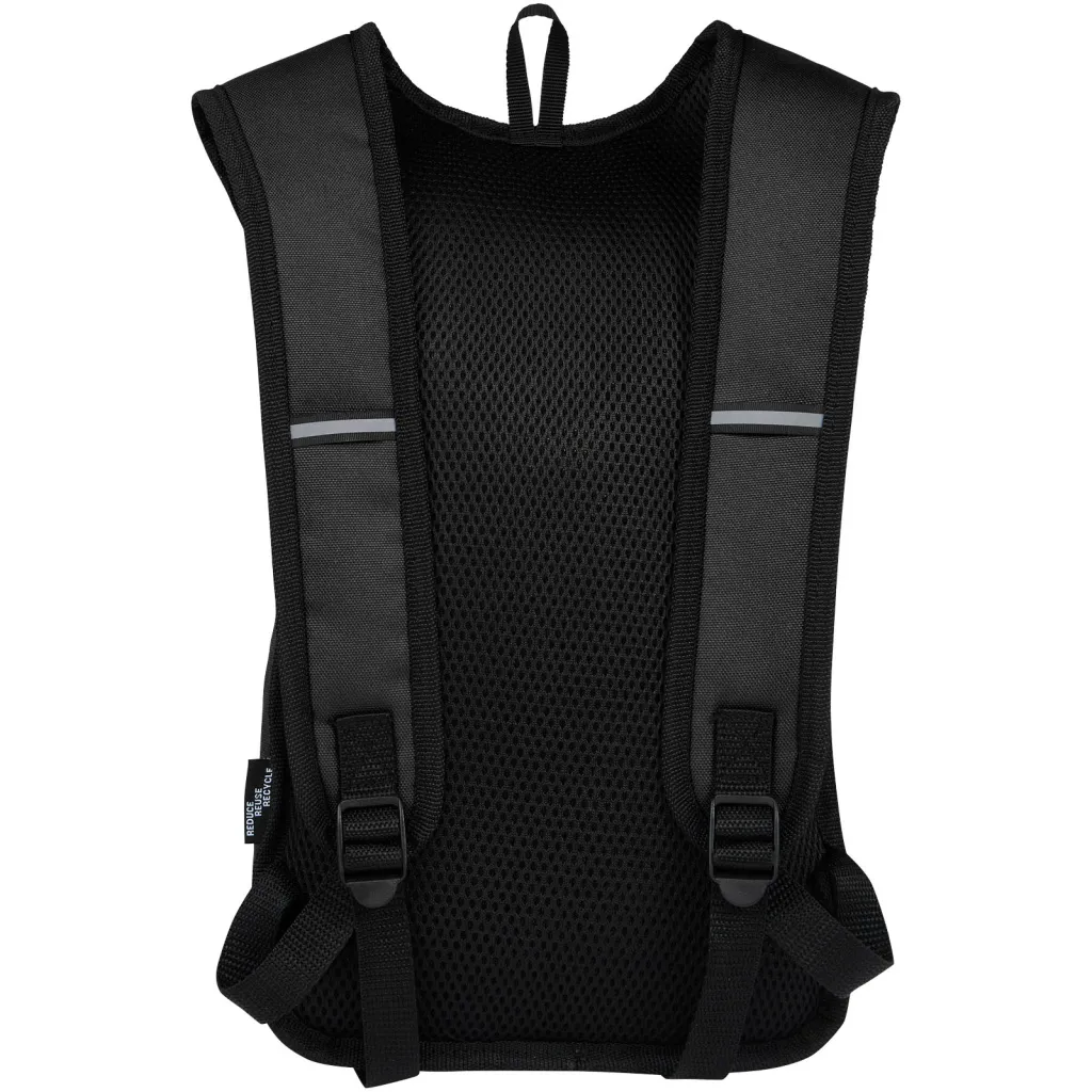 Trails ruksak izrađen je od 100% GRS reciklirane i vodoodbojne tkanine, a sadrži jedan prednji džep s patentnim zatvaračem i jedan glavni pretinac s patentnim zatvaračem te je kompatibilan s mijehom za vodu. Reflektirajuće trake za vidljivost i mrežasta stražnja strana za udobnoije nošenja čine ga odličnim održivim izborom za aktivnosti na otvorenom.