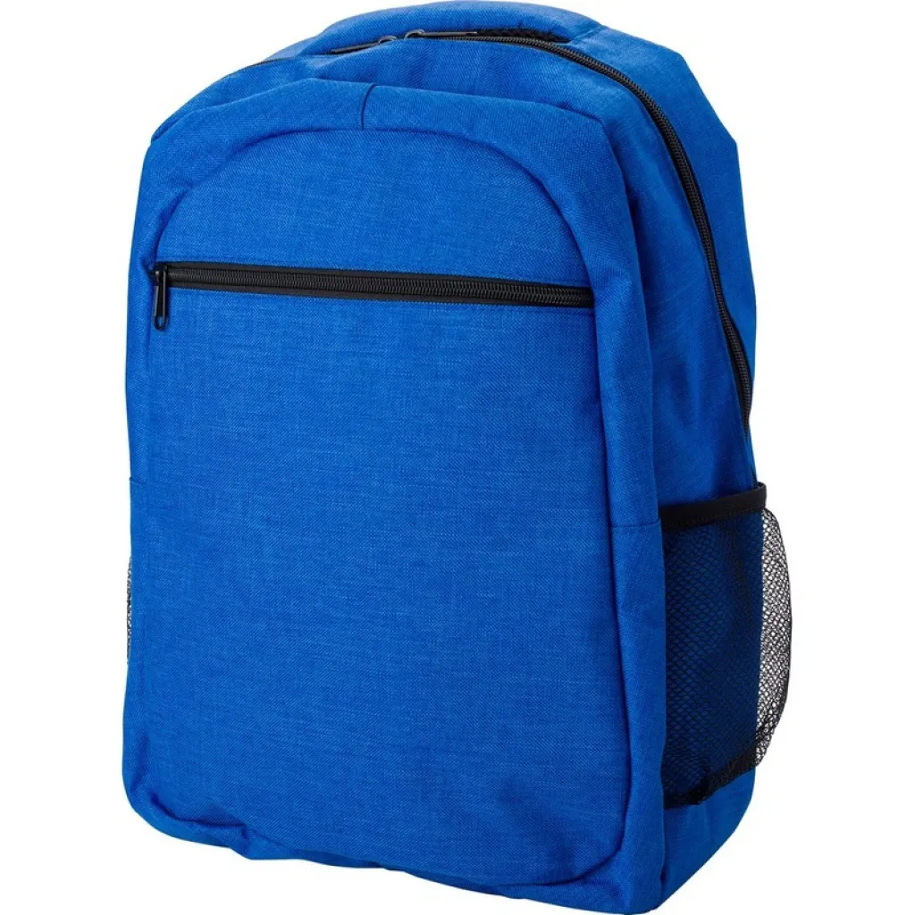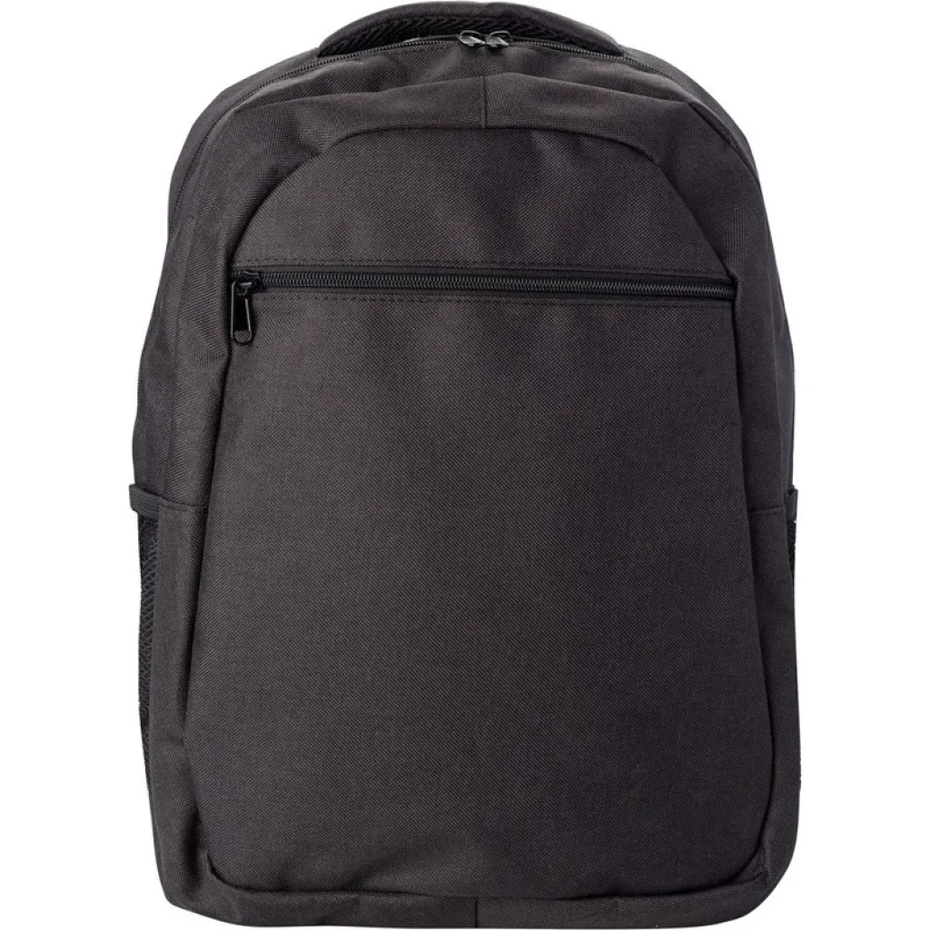 Ruksak s prednjim džepom s patentnim zatvaračem i podesivim naramenicama, džep za 15" laptop, 2 bočna, mrežasta džepa.