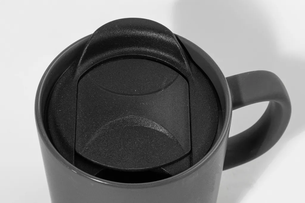 Visokokvalitetna keramička šalica s bazom od prirodnog pluta i PP plastičnim poklopcem za piće. Matirna vanjska površina i sjajna iznutra. Kapacitet: 325 ml. Dolazi u kutiji od natron papira.