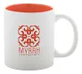 Bijela keramička šalica s unutarnjim dijelom u boji, 350 ml posebnim slojem za graviranje, gravirani logo iste boje kao unutrašnjost. Dolazi u poklon kutiji.