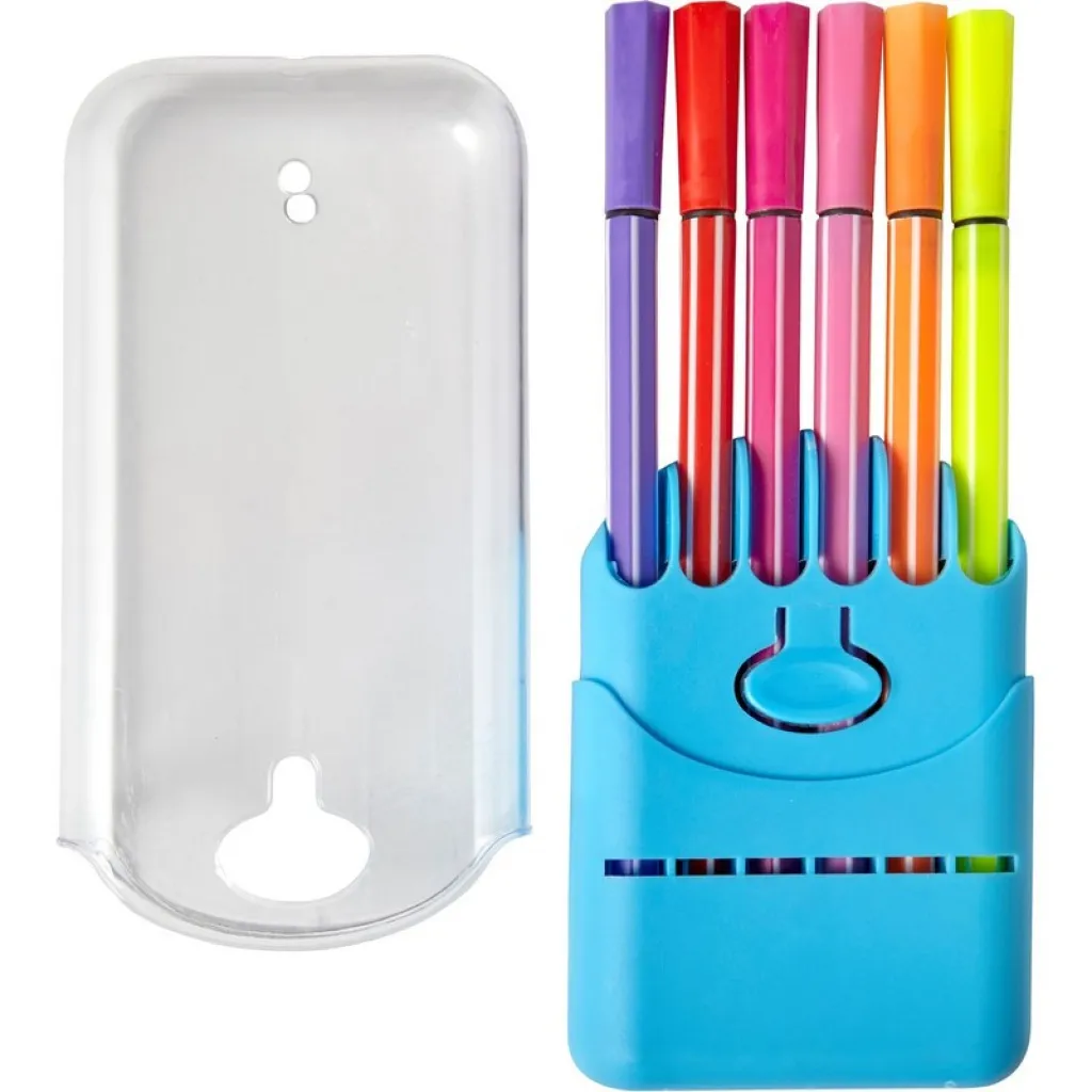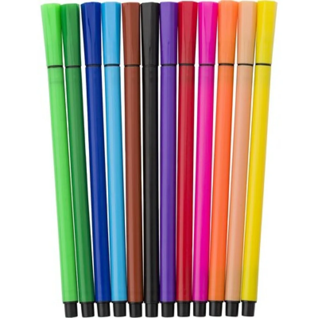 Set od 12 flomastera u prozirnoj kutijici.