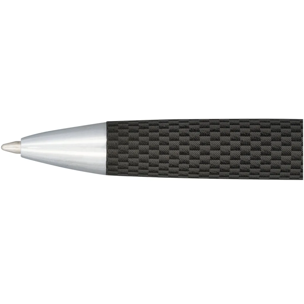 Za suptilno drugačiji pristup crnoj boji, ovaj ekskluzivno dizajnirani set kemijske olovke i roler kemijske olovke izrađen je od tiskanih ugljičnih vlakana. Uključuje kvalitetnu zaštitnu futrolu. Isporučuje se u poklon kutiji '' LUXE ''.