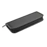 Metalna kemijska olovka s plavom tintom i roler kemijska olovka s crnom tintom u futroli od umjetne kože u pripadajućoj boji s patentnim zatvaračem i kontrastnim prošivima.