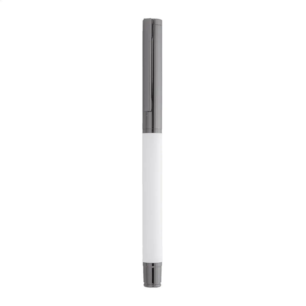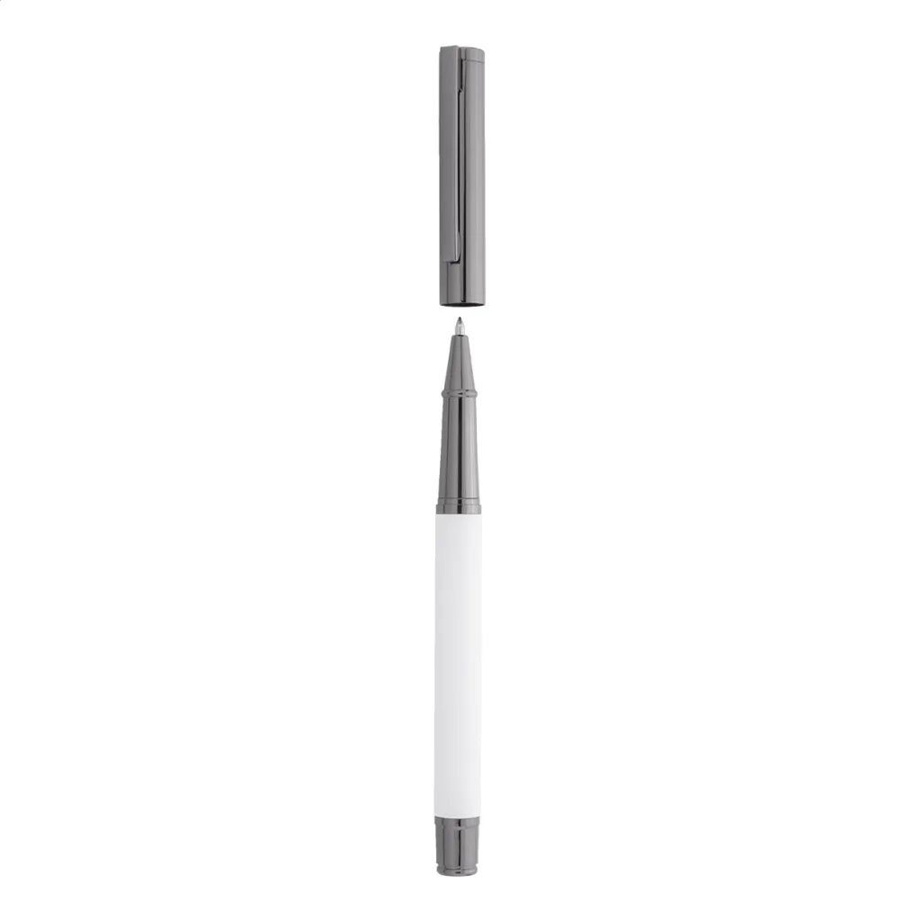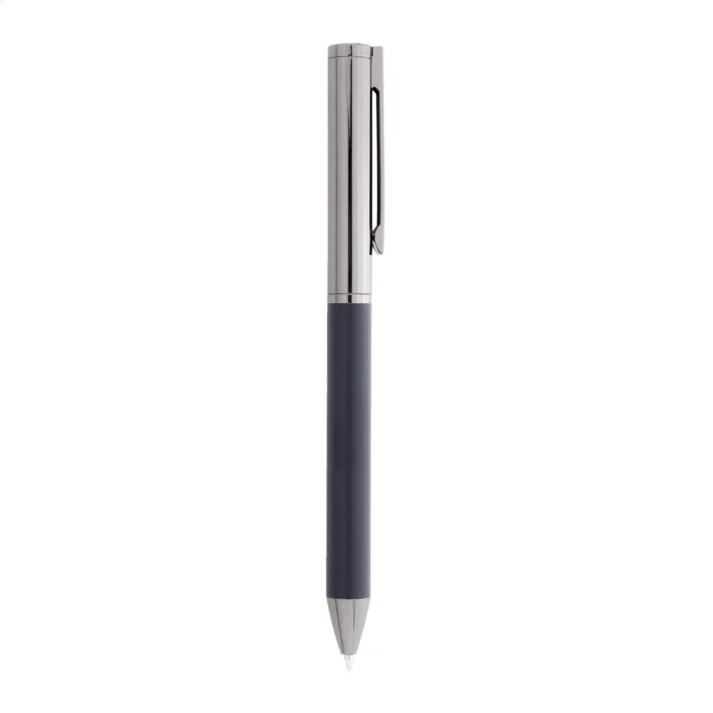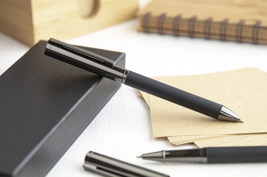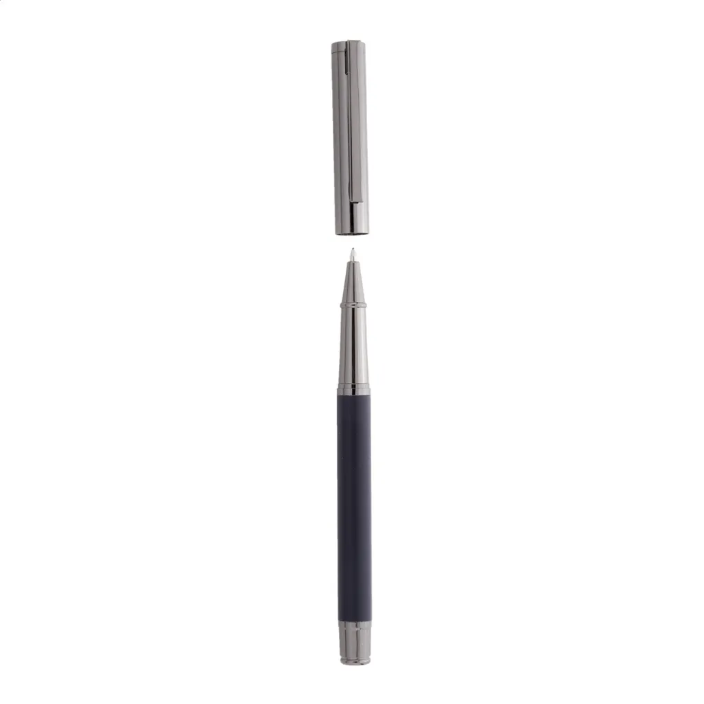 Elegantni metalni set sastoji se od kemijske olovke i roller kemijske olovke s plavim punjenjem. Dolaze u crnoj papirnoj poklon kutijici.