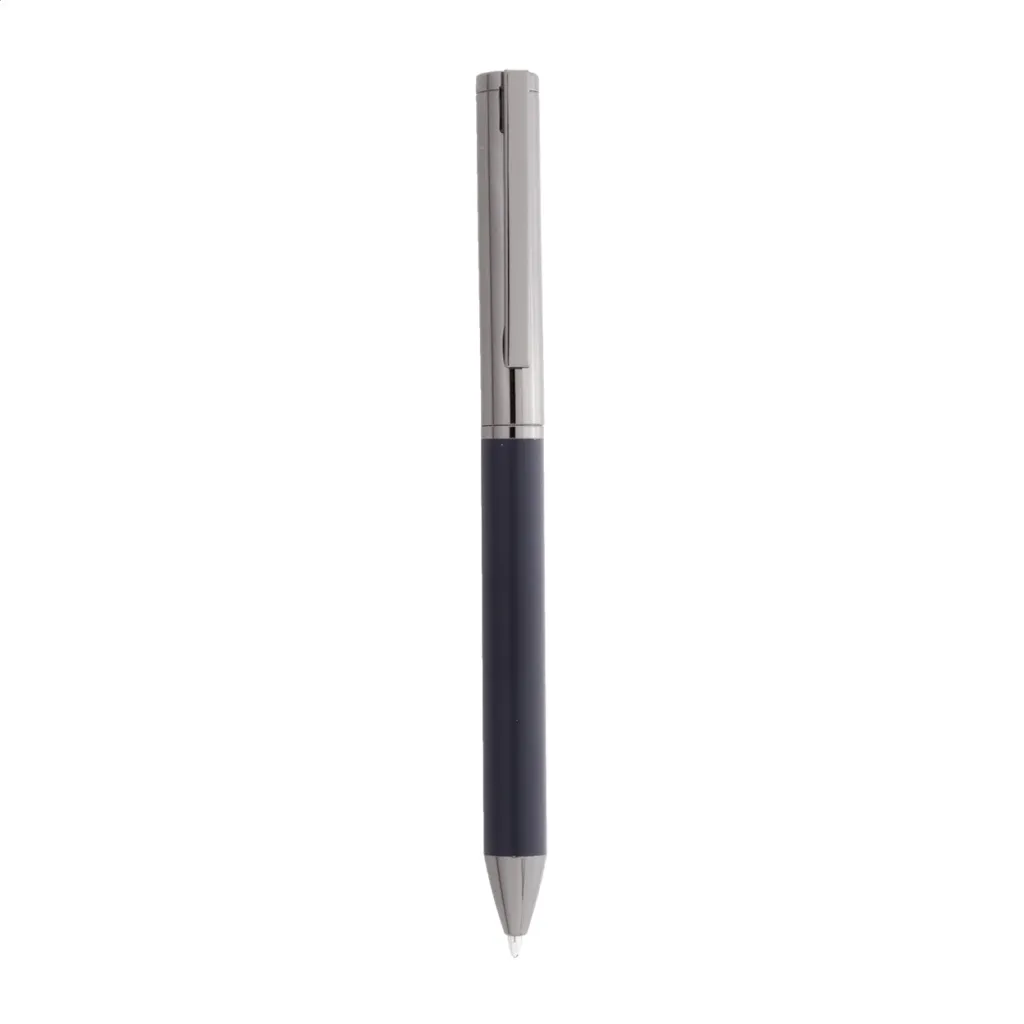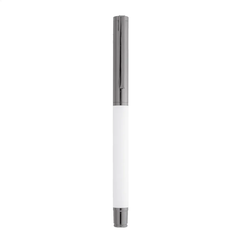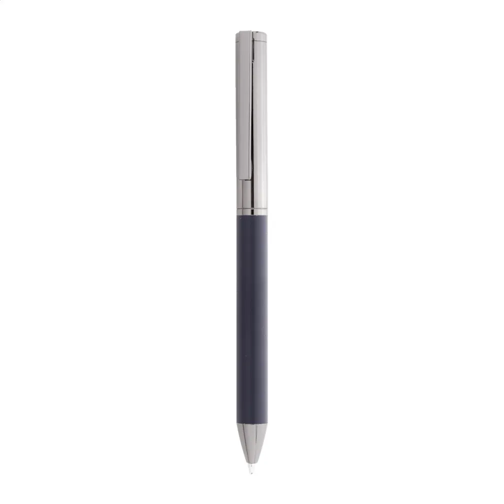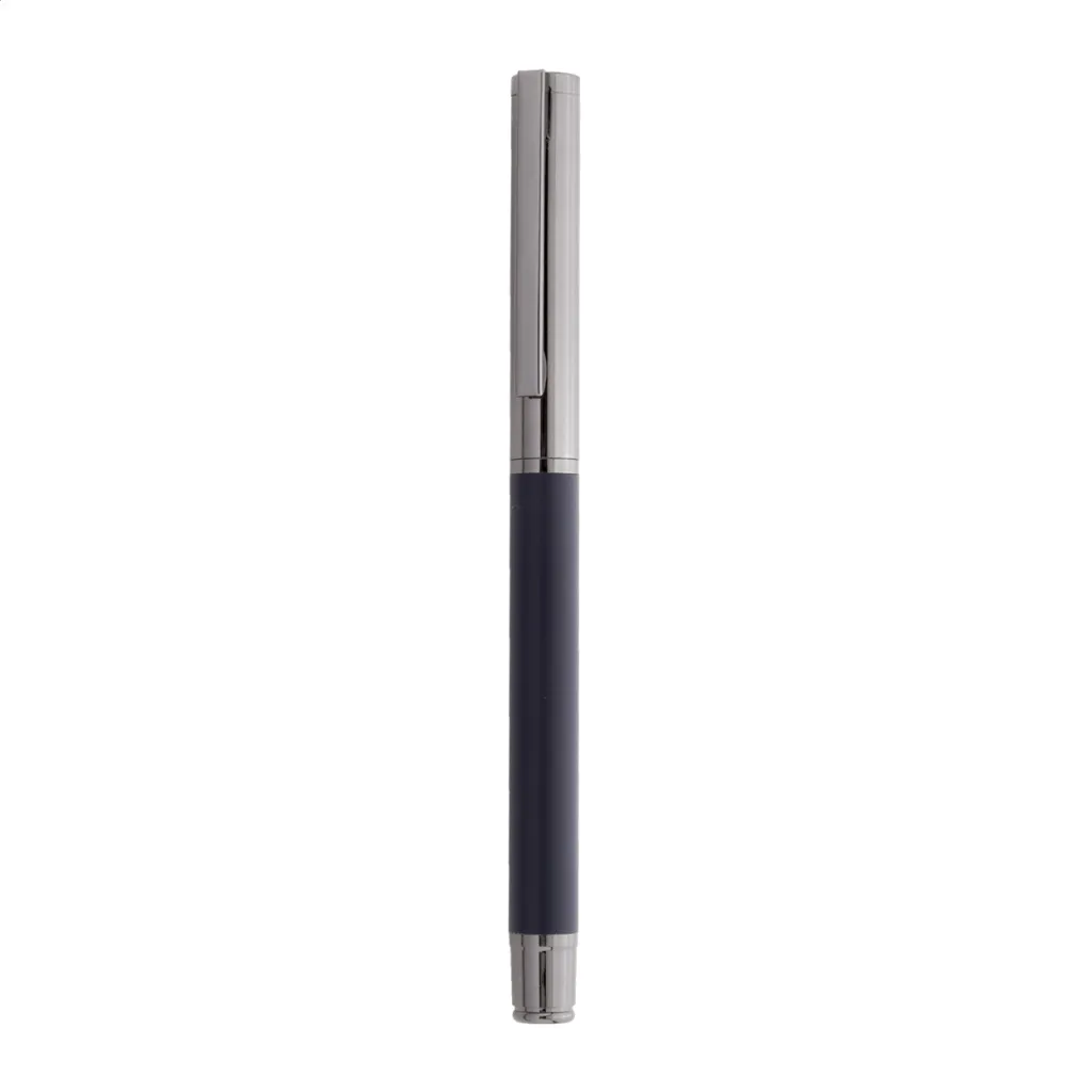 Elegantni metalni set sastoji se od kemijske olovke i roller kemijske olovke s plavim punjenjem. Dolaze u crnoj papirnoj poklon kutijici.