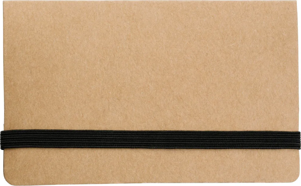 Kartonska knjižica sa 150 samoljepljivih papirića i unutarnjim džepom za posjetnice. Elastična traka preko omota.
