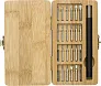 Set alata (odvijača) u kutiji od bambusa. Sadrži 25 komada - 24 bitova i jedan držač. Pojedinačno pakiran u smeđoj kartonskoj kutiji.