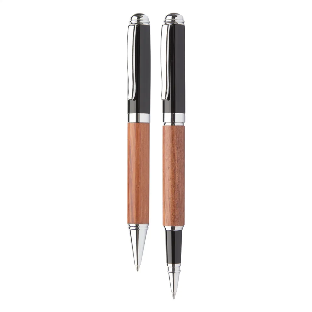 Elegantni set metalna kemijska olovka i roller kemijska olovka od palisander drva. U crnoj poklon kutiji s plavom tintom. André Philippe brend proizvod.