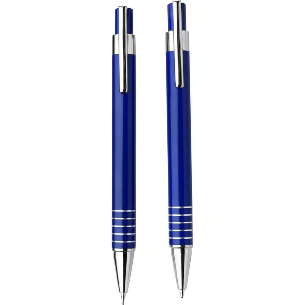 Set za pisanje koji se sastoji od kemijske i tehničke olovke, pakirano u kutijici odgovarajuće boje.