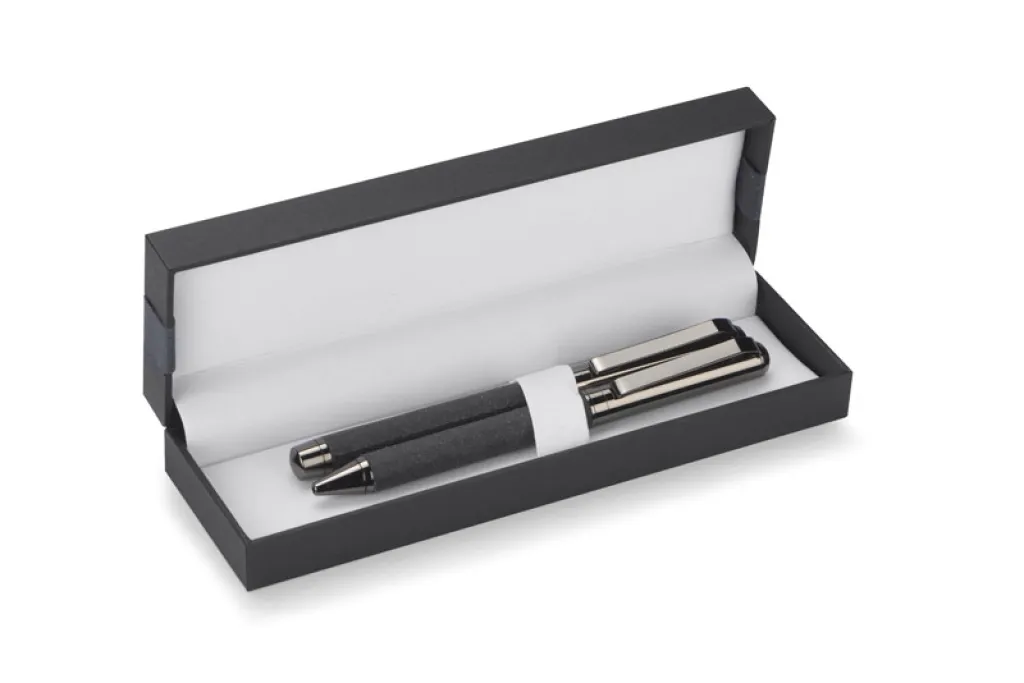 Metalna kućišta obje olovke presvučena su recikliranom, prirodnom kožom.