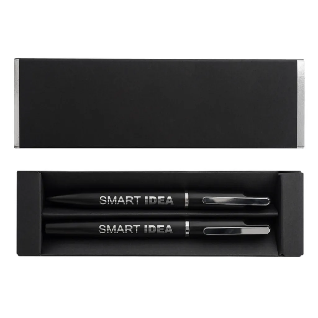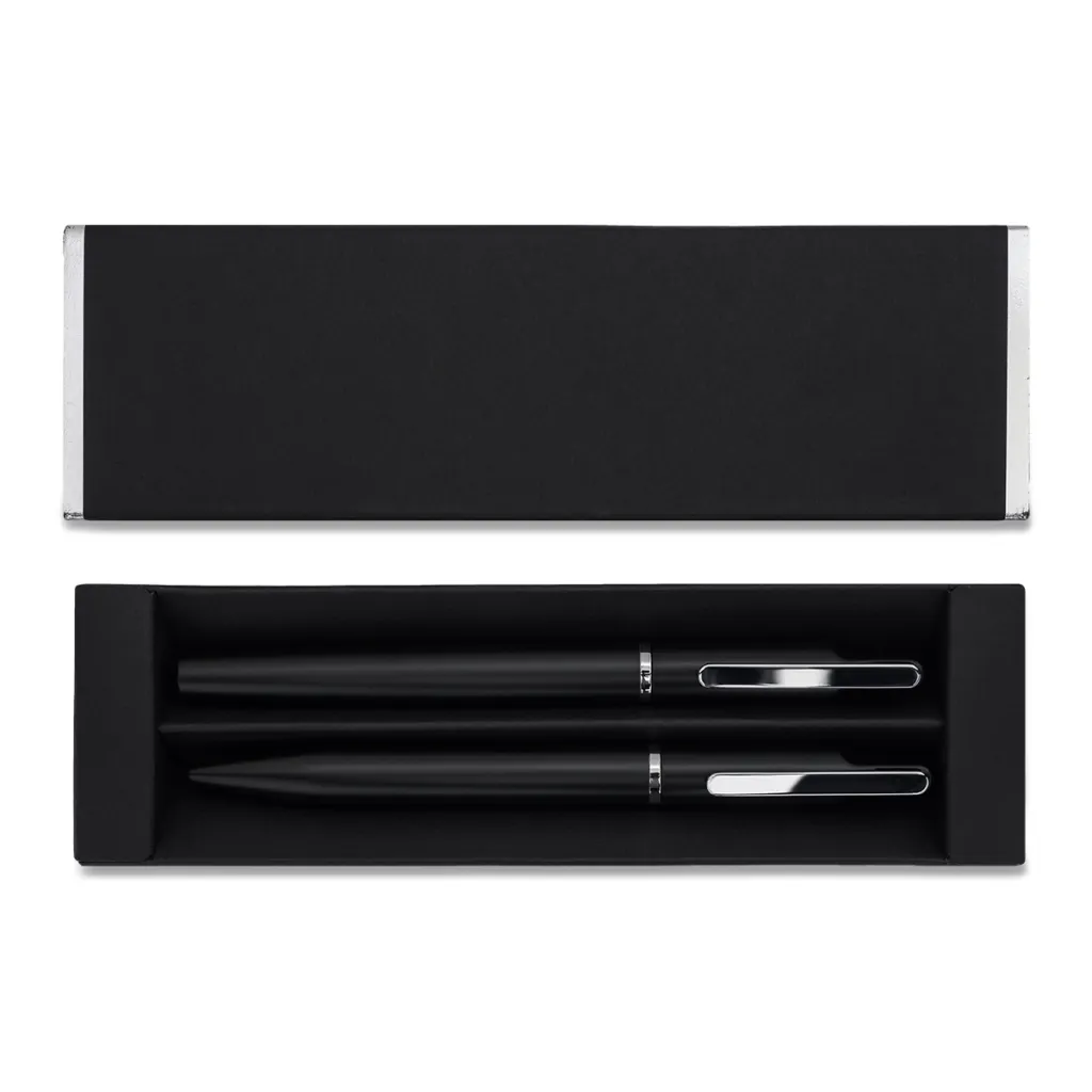 Elegantan poklon set koji se sastoji od metalne kemijske olovke i roler kemijske olovke. Mogućnost graviranja sjajnog logotipa, koji odgovara boji metalnih detalja olovke. Plavo punjenje.