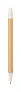 Set za pisanje od 5 komada u ekološkoj plastičnoj kutiji od pšenične slame. Uključuje drvenu olovku, kemijsku olovku od pšenične slame i recikoiranog papira s plavim punjenjem, ravnalo od 15 cm, drveno šiljilo i gumicu.