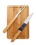 Bambus set za rezanje mesa sastoji se od daske za rezanje od bambusa te noža i vilice od nehrđajućeg čelika s drškama od bambusa.
