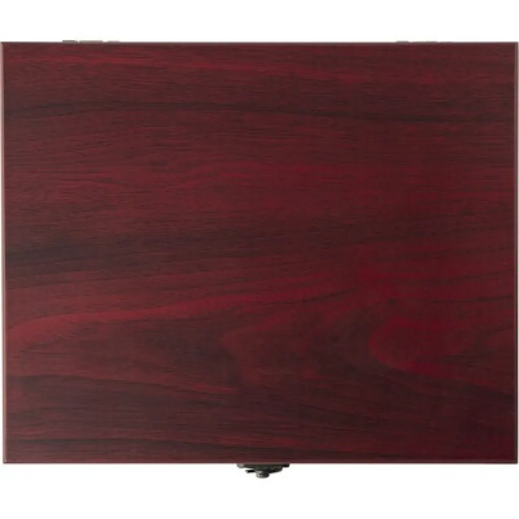 Set za vino u drvenoj kutiji, uključuje 2 čepa za boce, prsten, termometar, rezač folije, lijevak i vadičep.