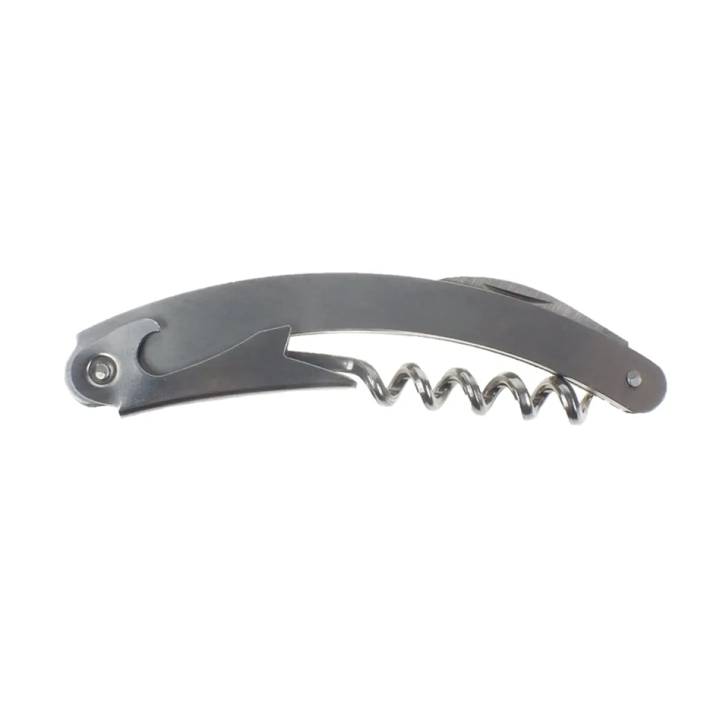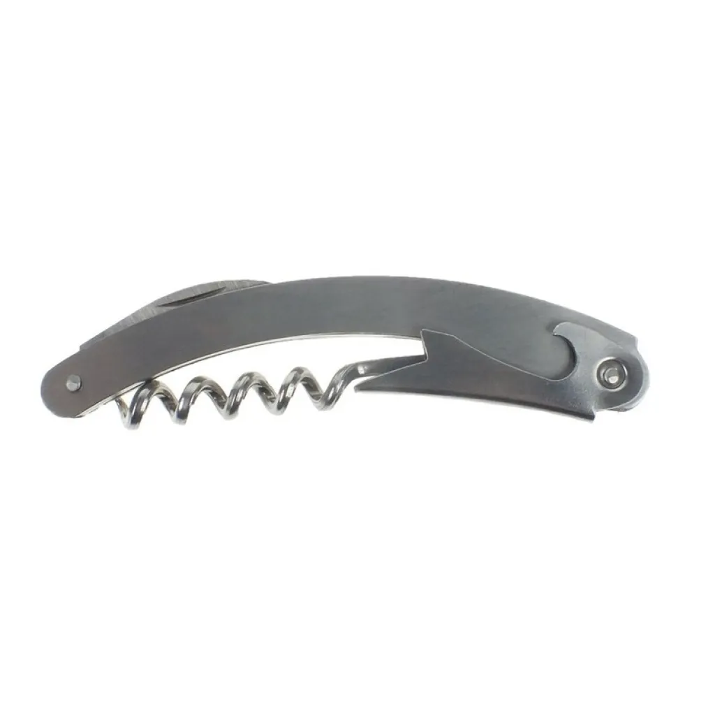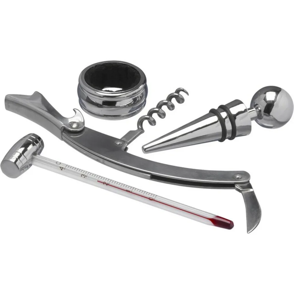 Vinski set od 4 kom u drvenoj kutiji s priborom za vino: konobarski nož, prsten, čep za vino i termometar.