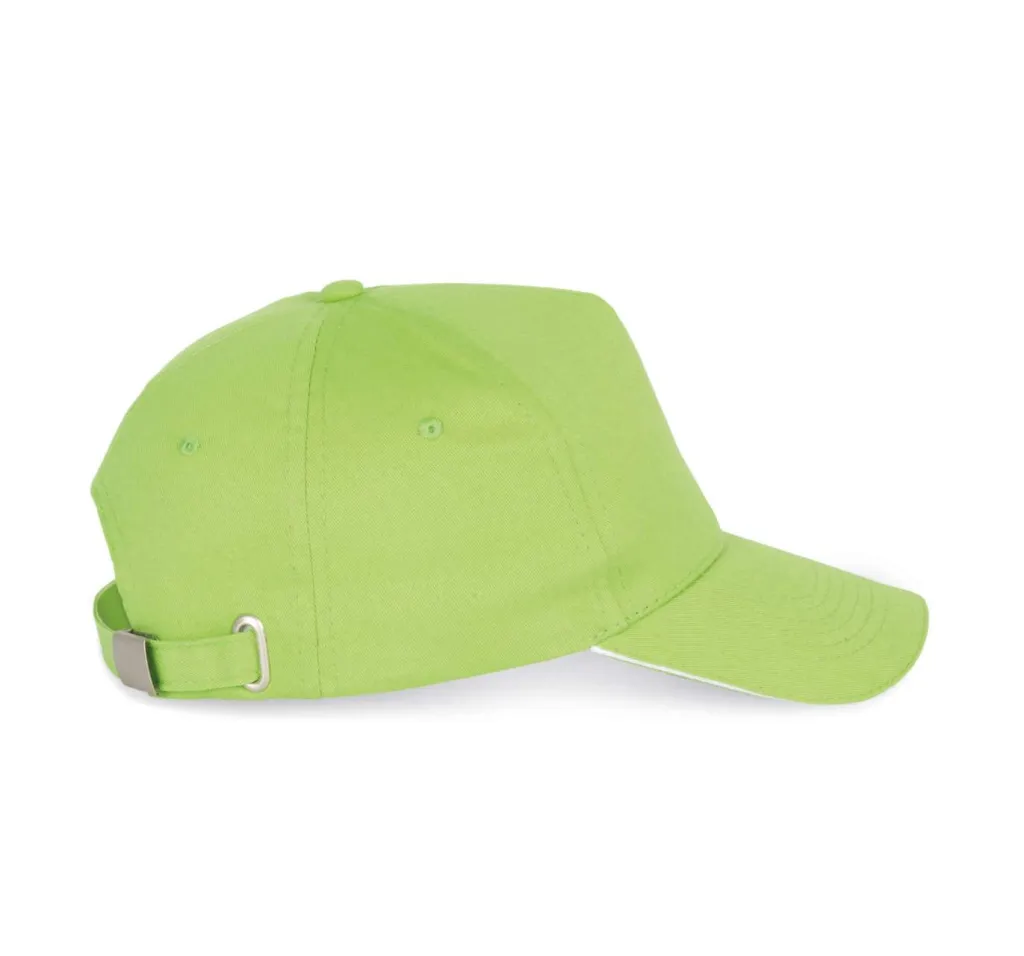 100% teški brušeni pamučni keper. 5 panela. Pamučna traka za znoj. Podesiva veličina pomoću metalne kopče.