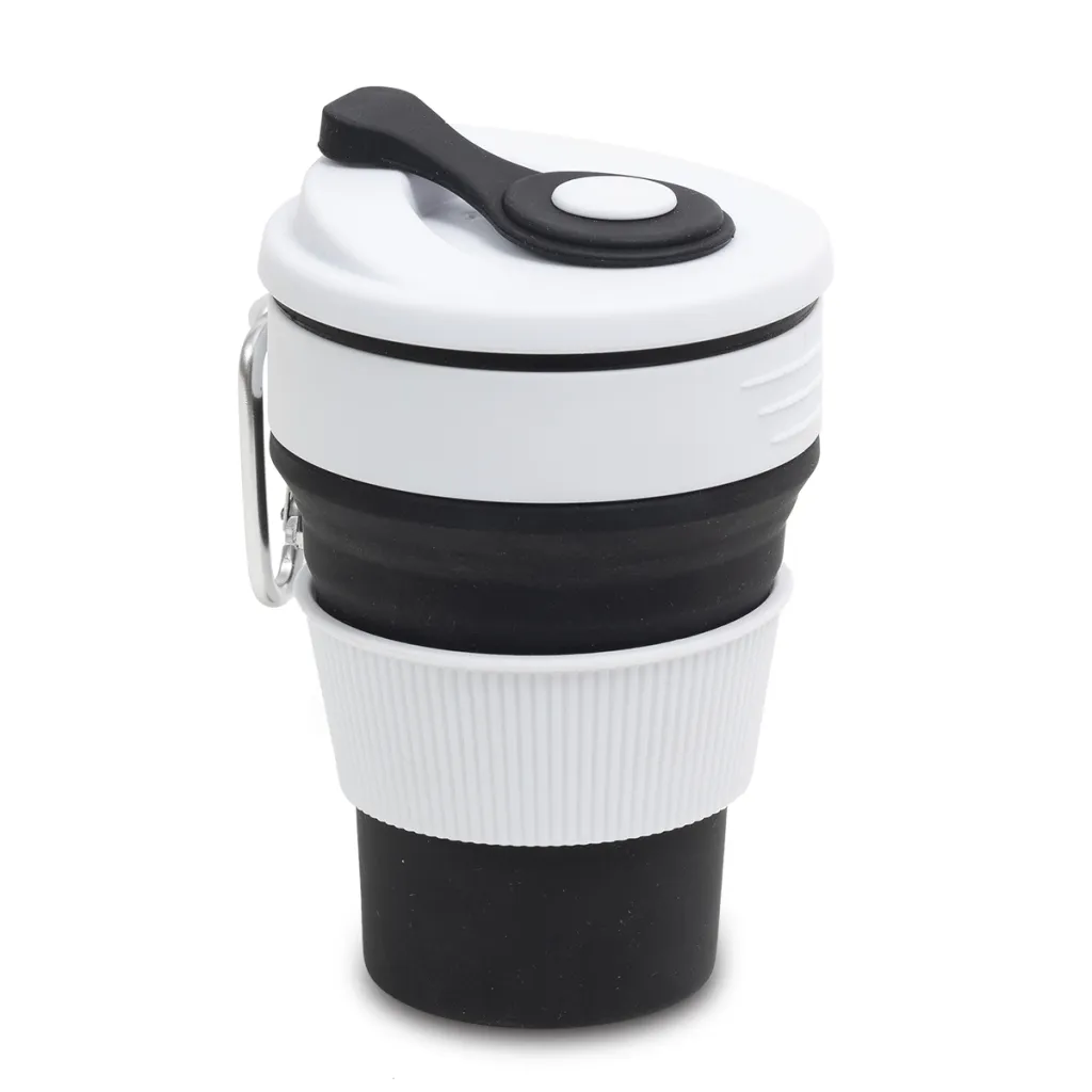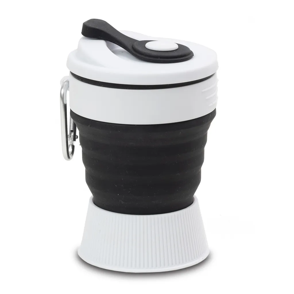 Sklopiva silikonska čaša od 350 ml. Sklopljena zauzima vrlo malo prostora i može se nositi u džepu jakne, torbe ili pričvršćenu za ruksak. Savršena kada kupujete kavu to go ili nosite vlastito piće kada ste u šetnji. Prikladna za zamrzivač.