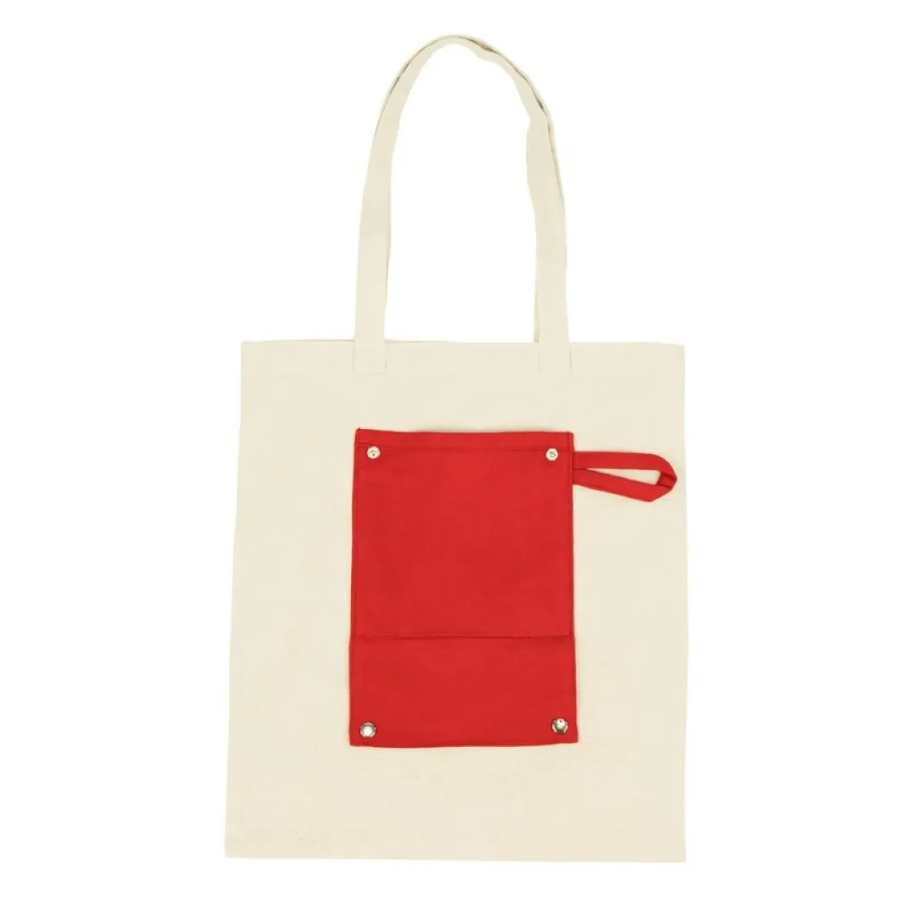 Sklopiva torba za kupovinu s dugim ručkama i prednjim džepom, izrađena od 220 g/m2 pamuka.