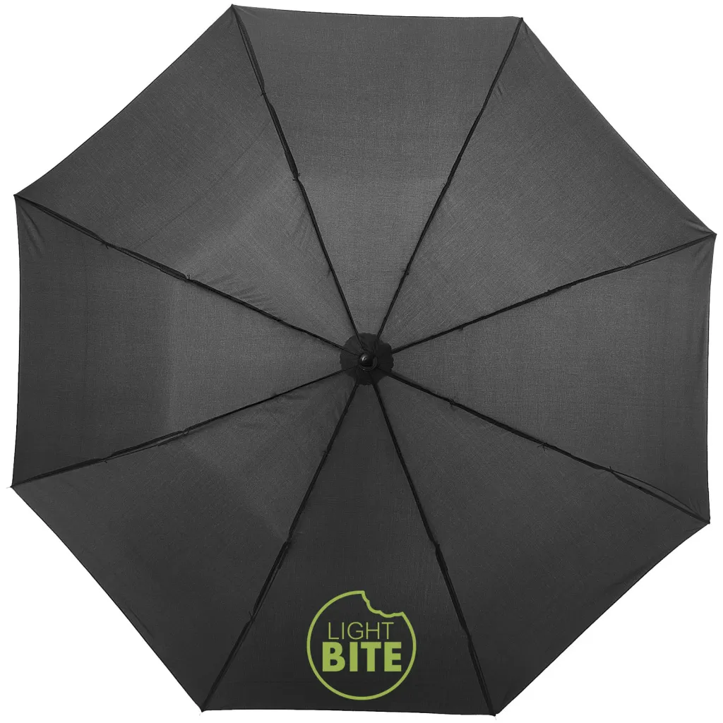 Kišobran od 51 cm sklopiv na dva dijela s plastičnom ručkom i željeznom konstrukcijum. Dolazi s futrolom.