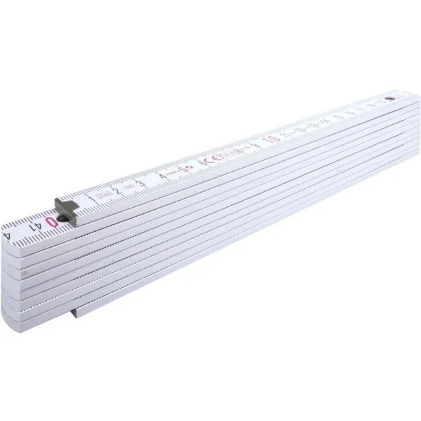 Drveno sklopivo ravnalo ukupne dužine 2 metra s mjerilom u cm. Ima premaz otporan na udarce i posebno čvrste šarke od nehrđajućeg čelika. Proizvedeno u Europi.