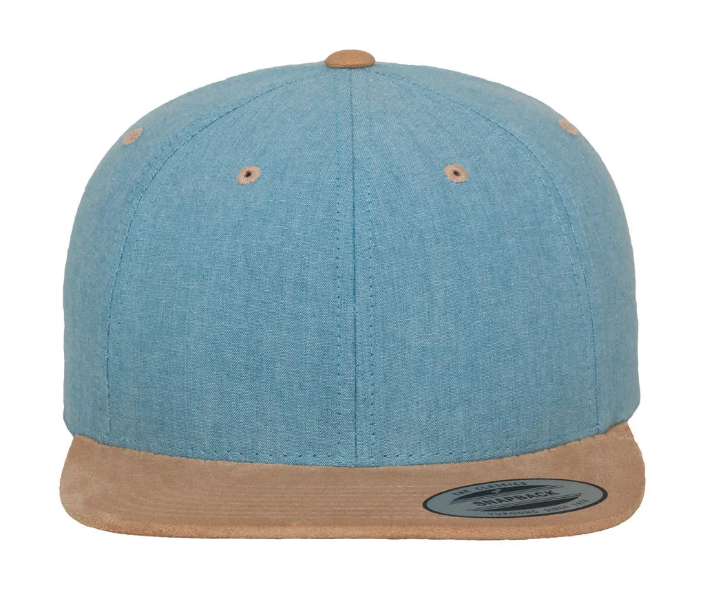 ·170 g/m² ·Kruna: 100% pamuk (Chambray) ·Šilt: 100% poliester (izgled brušene kože) ·Klasičan oblik ·6 panela ·Ravni šilt s 8 redova šavova ·Donji dio šilta u istoj boji ·Snapback podešavanje veličine.