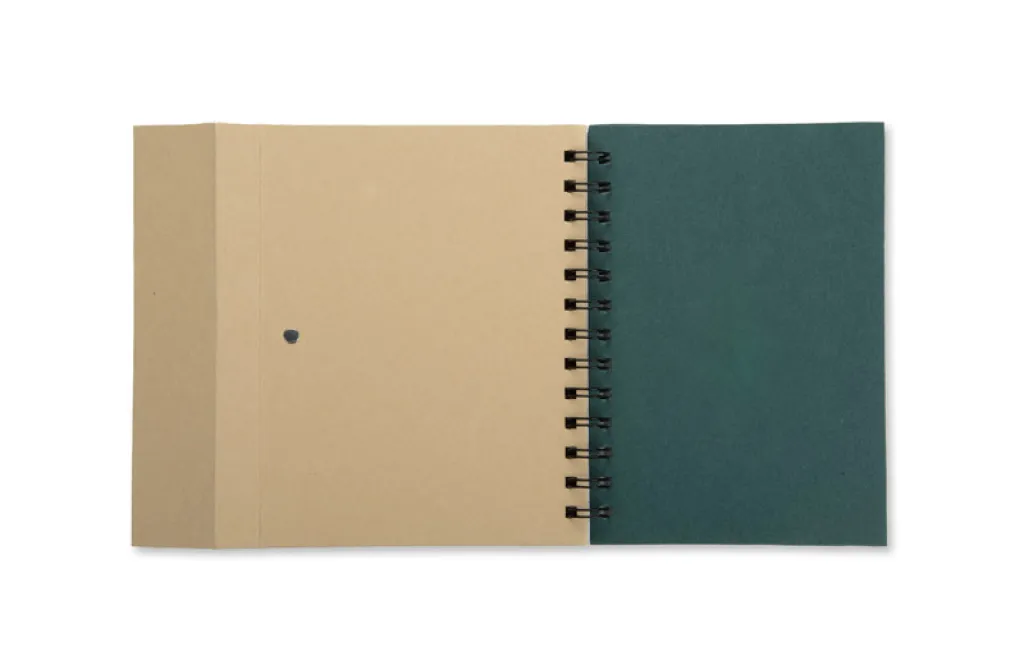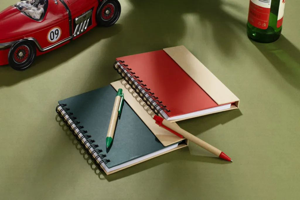 Praktični spiralni blok s 70 listova s crtama (kemijska olovka je uključena). Na stražnjoj strani korice se nalaze samoljepljivi blokići različitih veličina i boja (svaki blokić ima 25 listova). Mogućnost dotiska na korice.