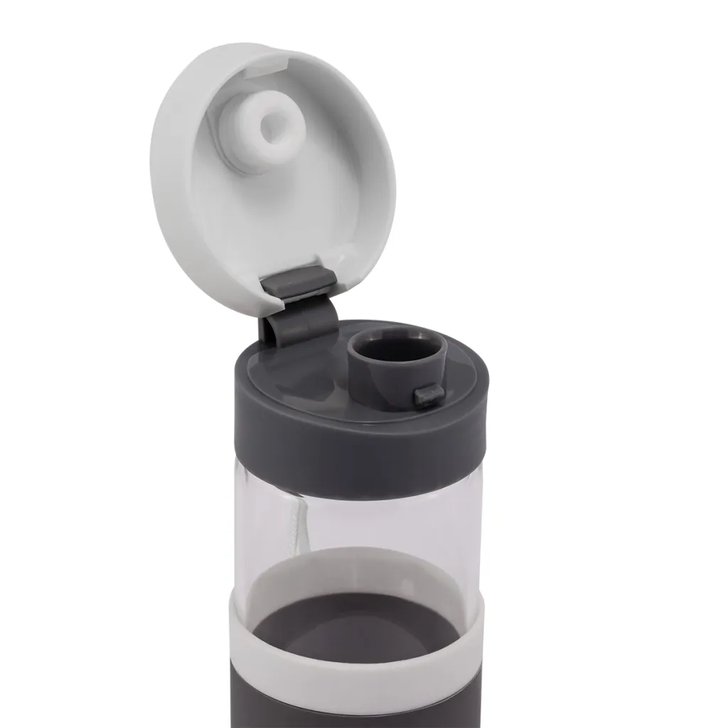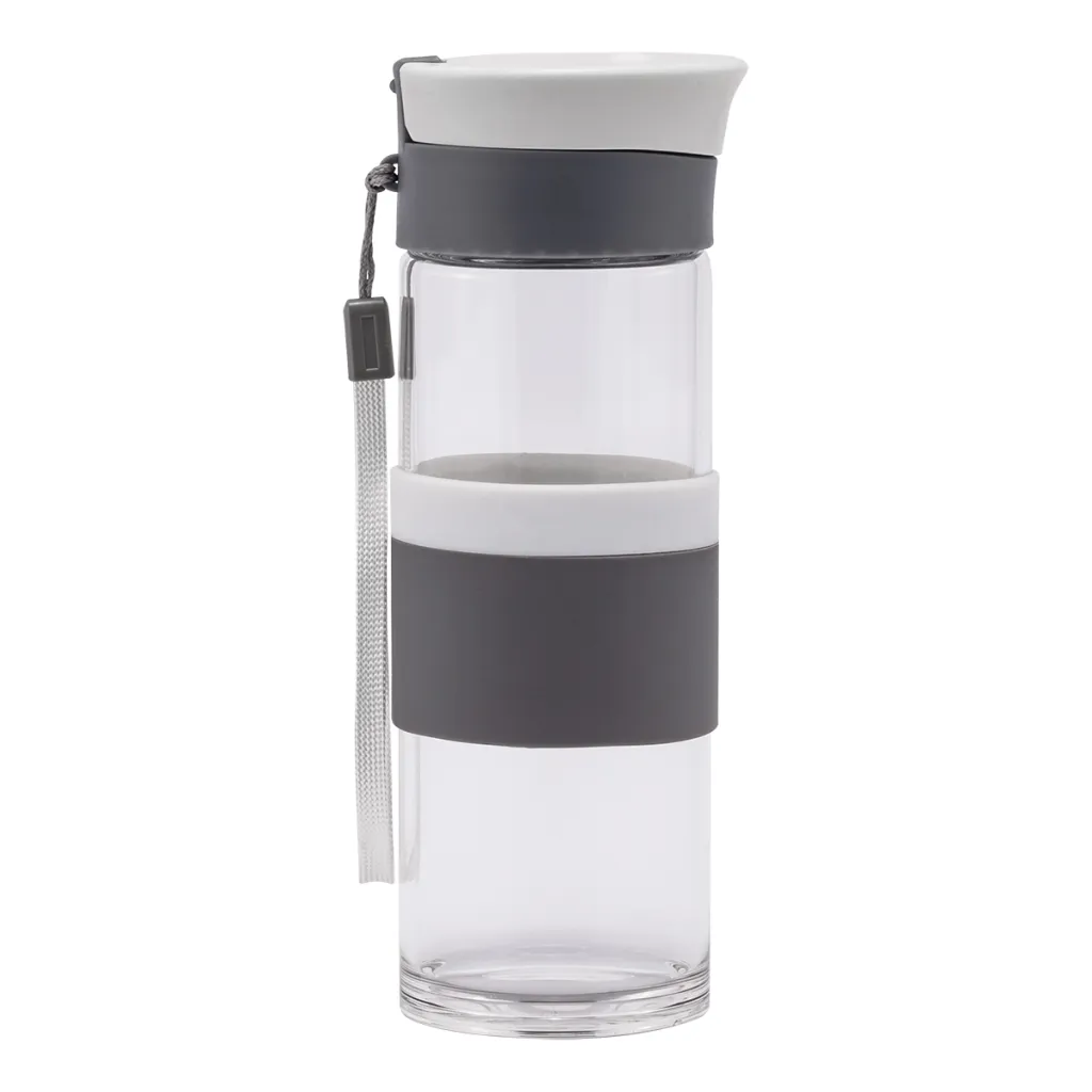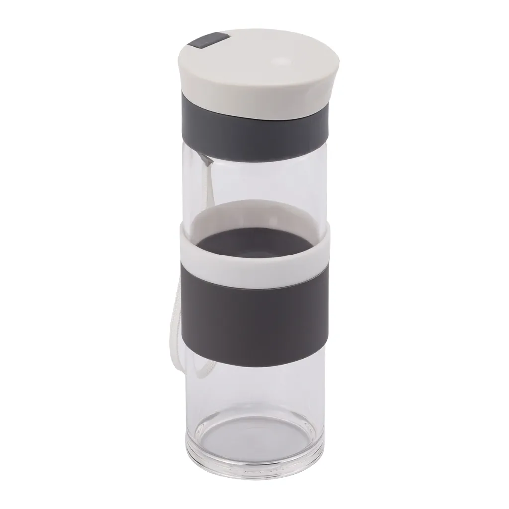 Sportska boca 440 ml, od borosilikatnog stakla i plastike s ručnim remenom, neklizajuća.