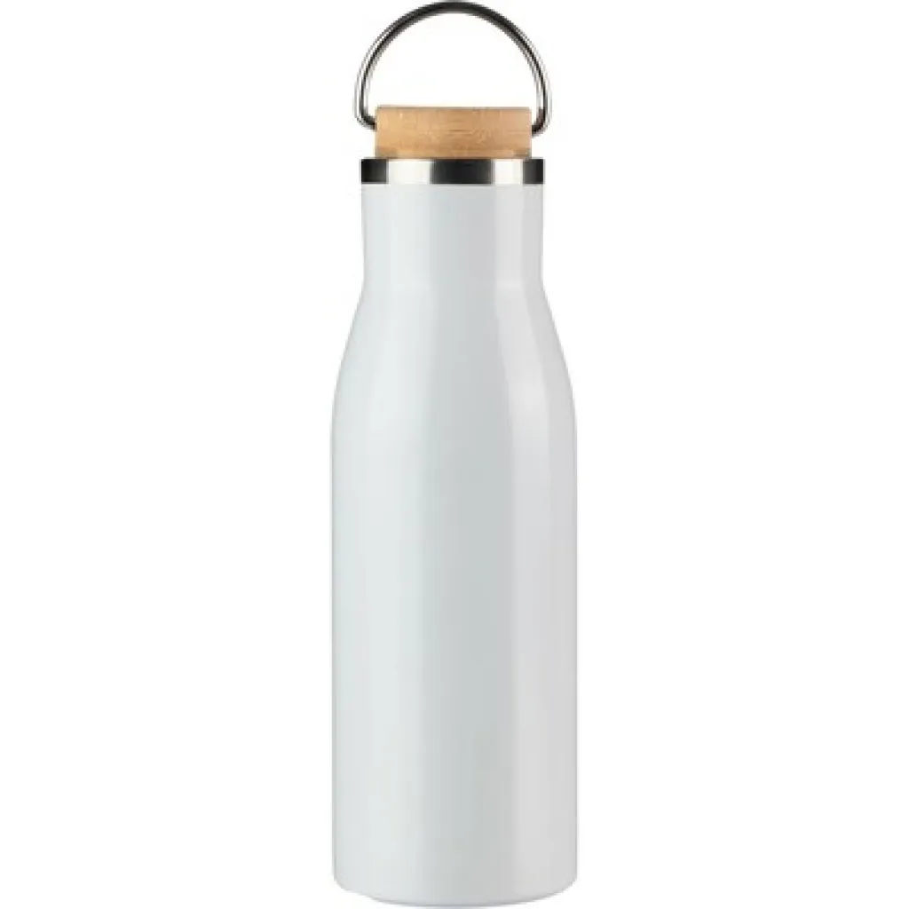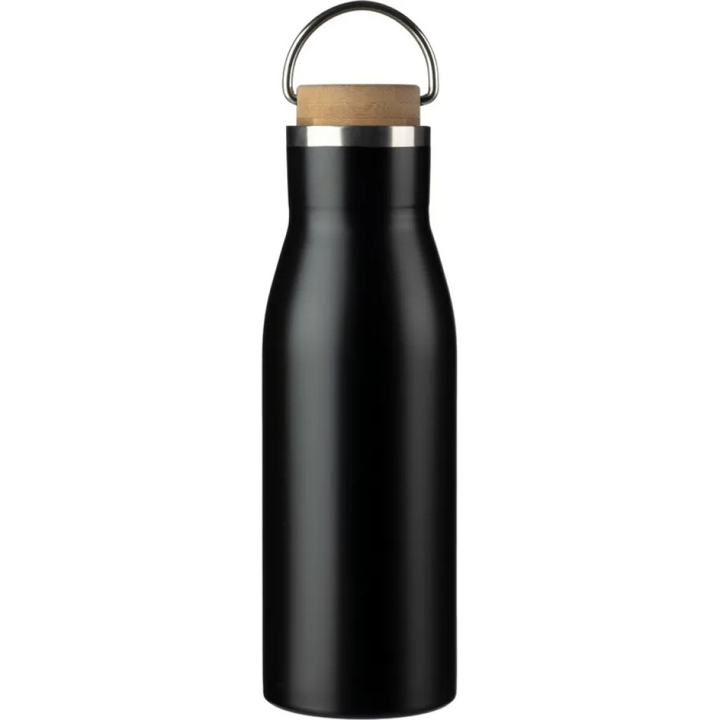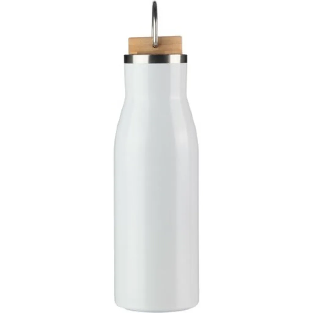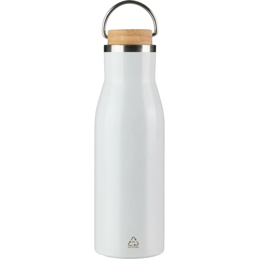 Sportska boca zapremine 500 ml, poklopac s detaljem od bambusa te metalnom ručkom za lakše nošenje. Na boci se nalazi oznaka recikliranog čelika, proizvod izrađen od recikliranog nehrđajućeg čelika.