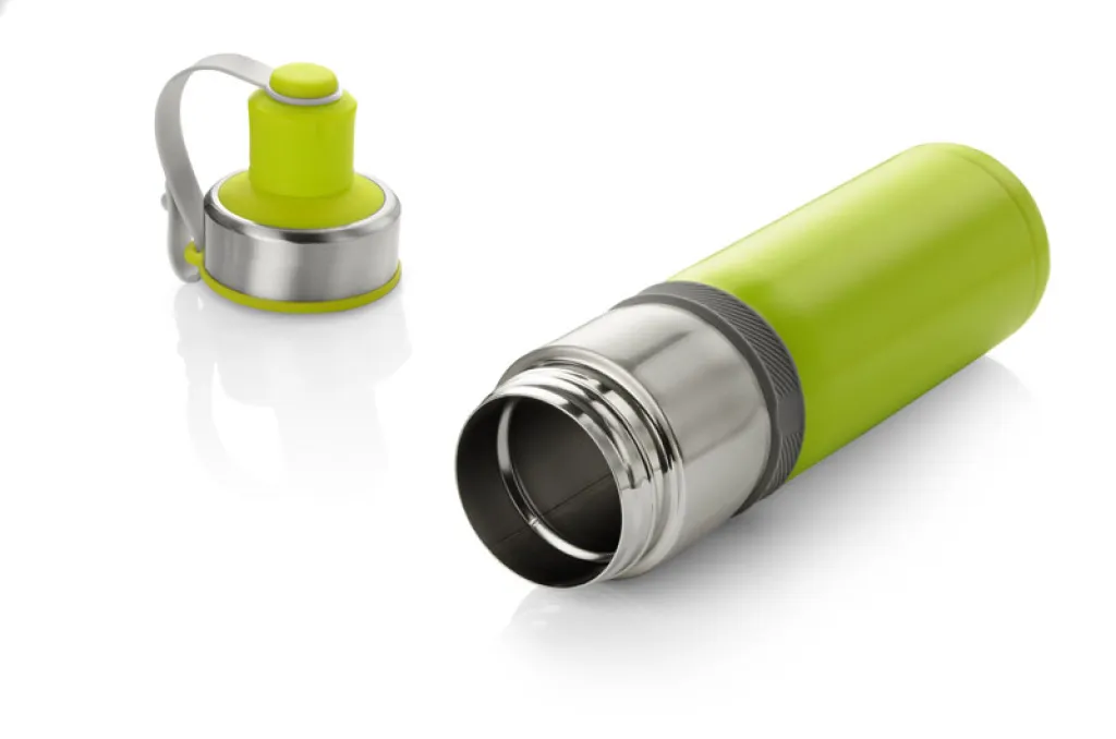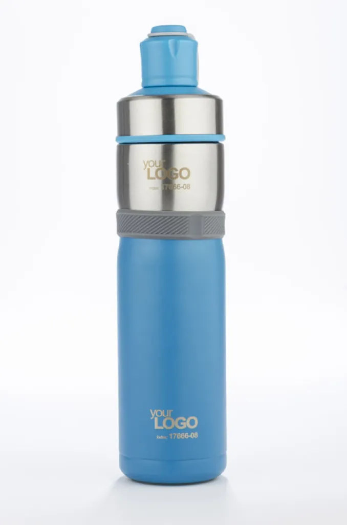 Sportska boca s vakuumom. Zahvaljujući vakuumskoj izolaciji održava se temperatura hladne ili tople tekućine. Prikladan zatvarač s vezicom vrlo je koristan za aktivnog korisnika. Boca je izrađena od visokokvalitetnog nehrđajućeg čelika. Zapremnina 500 ml.