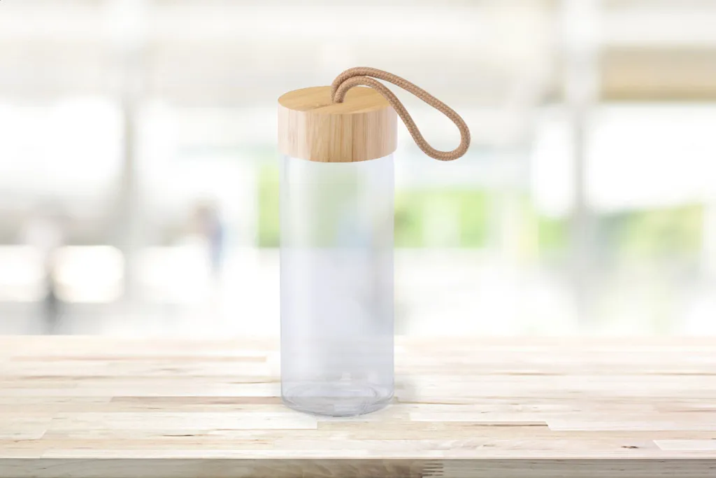Staklena sportska boca s poklopcem od bambusa, 420 ml. Dolazi u poklon kutiji.