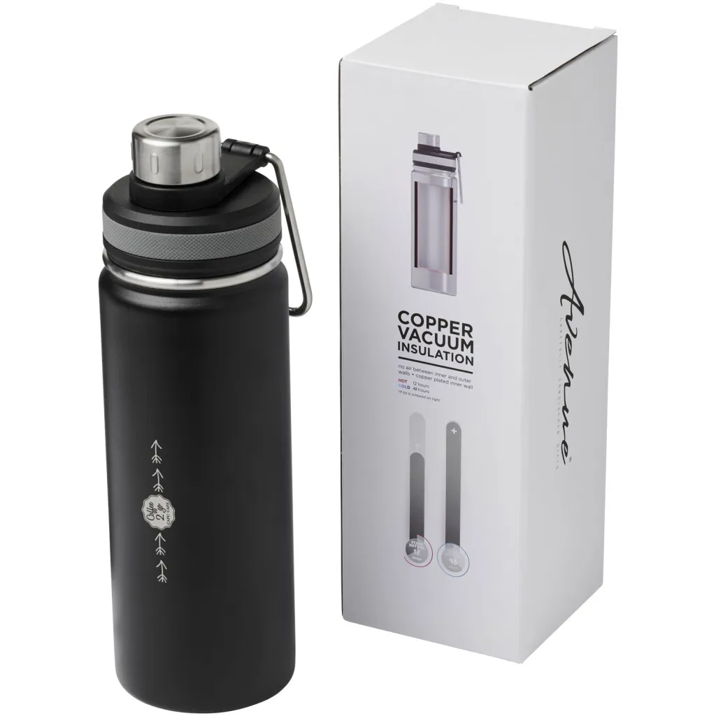 Sportska termos boca s dvoslojnom izolacijom od nehrđajućeg čelika napitak drži vrućim najmanje 12 sati, a hladnim 48 sati. Dvoslojna izolacija također sprečava kondenzaciju na vanjskoj strani boce. Sadrži poklopac od nehrđajućeg čelika s ručkom za nošenje. Otporno na proljevanje napitka. Jednostavno za održavanje i punjenje. Zapremnina 350 ml. Pakirano u Avenue poklon kutiji. Preporučeni dotisak roto sito. Cijena na upit.