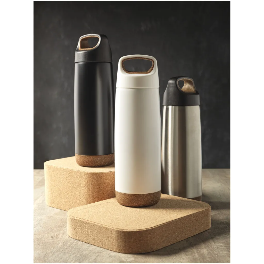Sportska boca s bakrenom vakuumskom izolacijom. Dvostruka stijenka od nehrđajućeg čelika s bakrenom izolacijom omogućuje da pića ostanu hladna 48 sati ili vruća najmanje 12 sati. Stijenka sprečava kondenzaciju na vanjskoj strani boce. Poklopac na vijak s detaljima od pluta, kao i dno od pluta štite od klizanja boce. Zapremnina 600 ml. Dolazi u Avenue poklon kutiji.