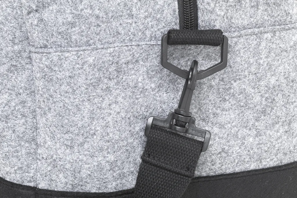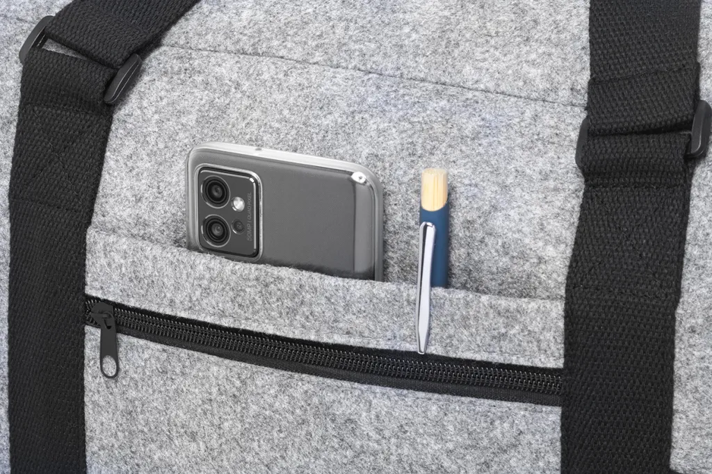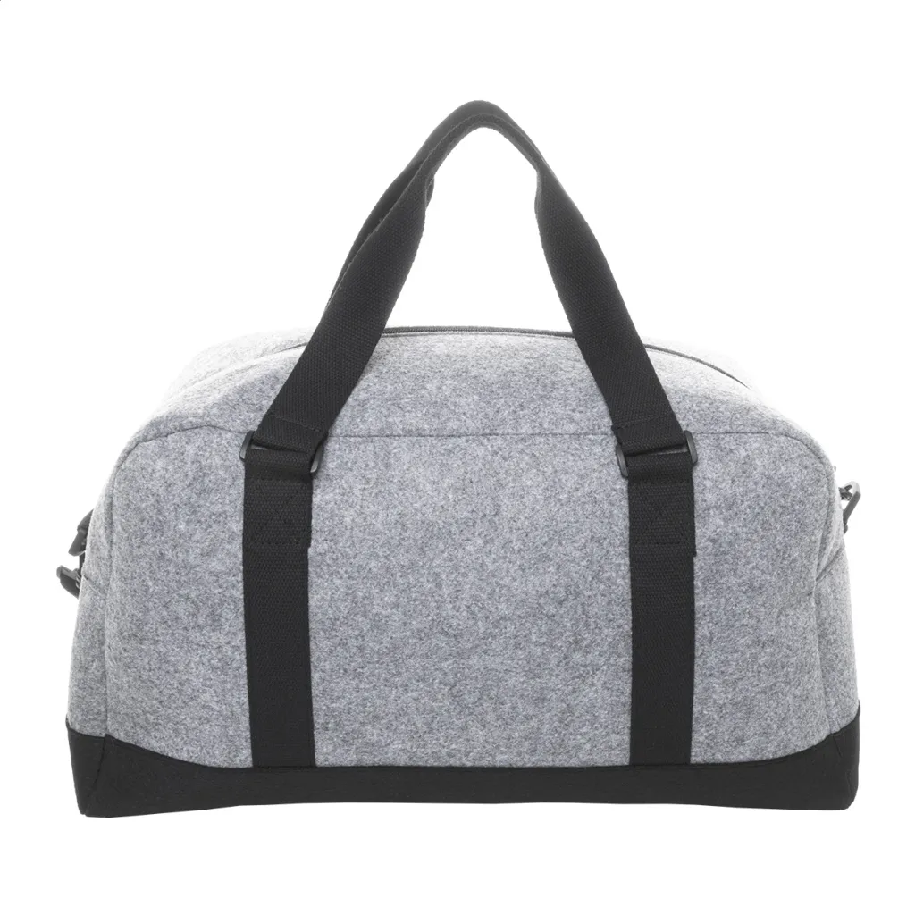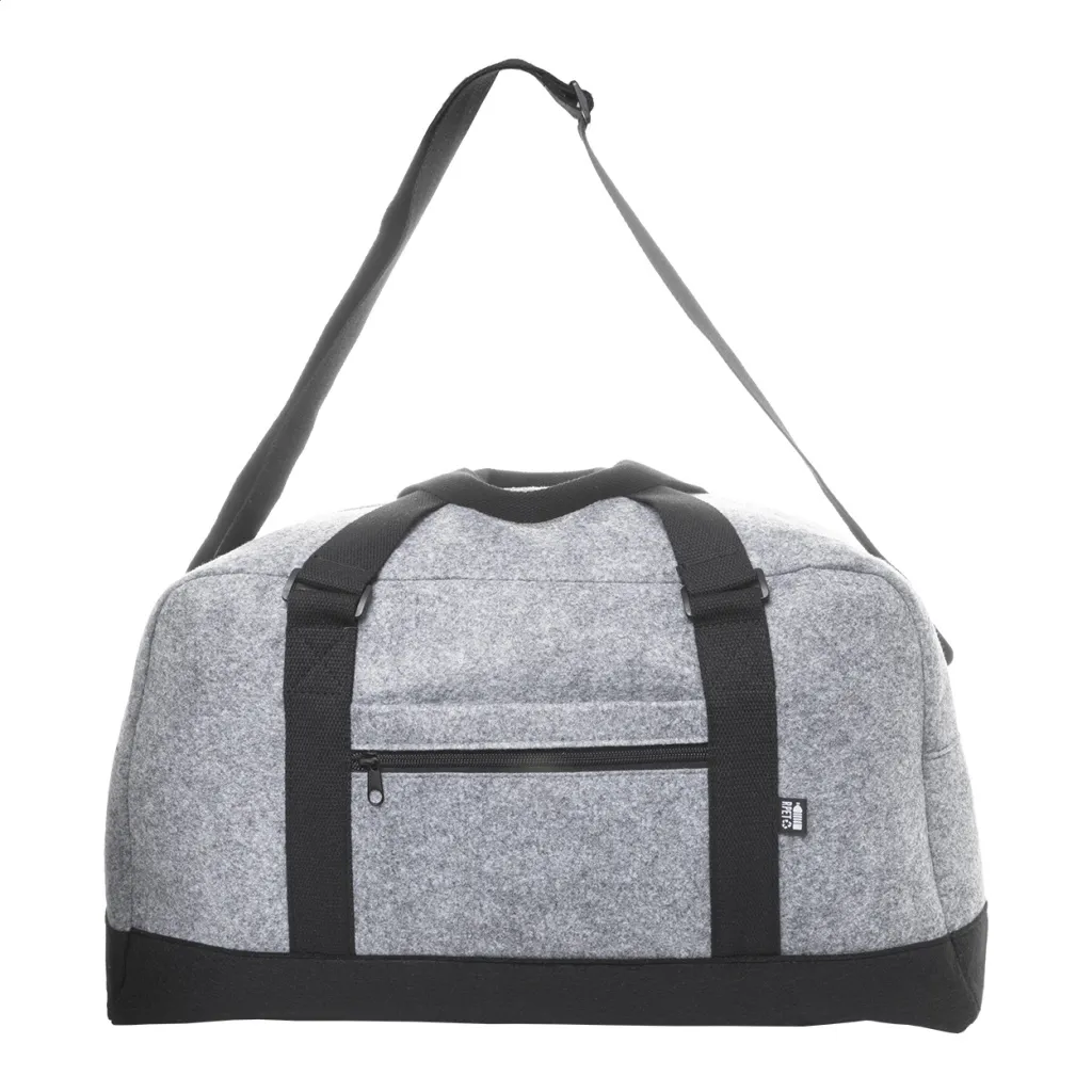 Dvobojna sportska torba od RPET filca s glavnim pretincem s patentnim zatvaračem, prednjim džepom s patentnim zatvaračem i podesivim remenom za rame. S prepoznatljivom RPET oznakom.